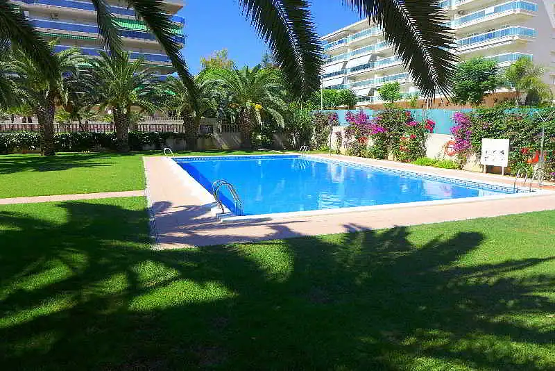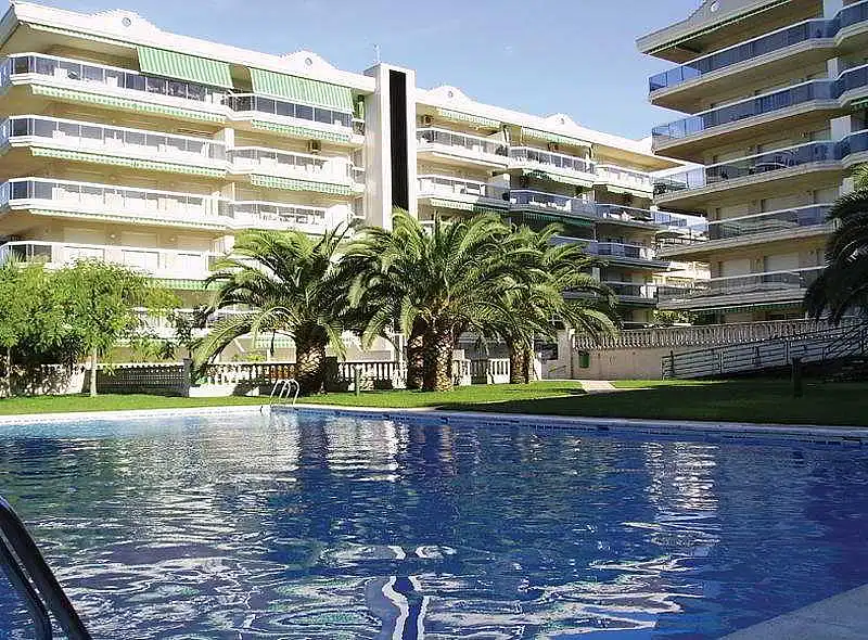 These apartments are situated close to the tourist centre of salou and in about 500m from the beach. Bars, restaurants and places of interest and night life can be found in 350m. A public bus stop is in only 150m.||This modern apartments complex counts with a large terrace and panoramic lifts with pool view. It can be distinguished by a quiet area in which it is situated and a green zone.||Two-bedroom apartments with capacity up to 6 people count with one bedroom with a double bed and the other one with 2 single beds. They have a fully equipped bathroom, a kitchen with a washing machine, a sitting room with a sofa-bed and a terrace. It is also possible to hire a TV-set. Bed linen and hand towels are provided. Cleaning is done on arrival and departure.||Apartment complex has a swimming pool.