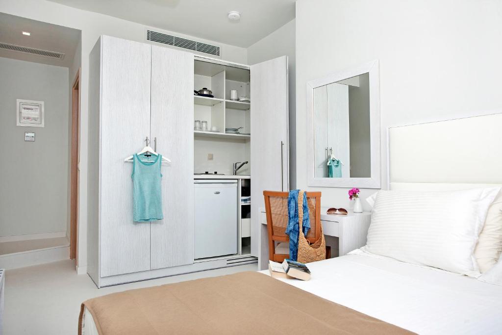 Cazare confortabilă: Aparthotelul oferă camere de familie cu balcoane, chicinete și băi private. Fiecare unitate include aer condiționat, birou și televizor cu ecran plat, asigurand un sejur confortabil.