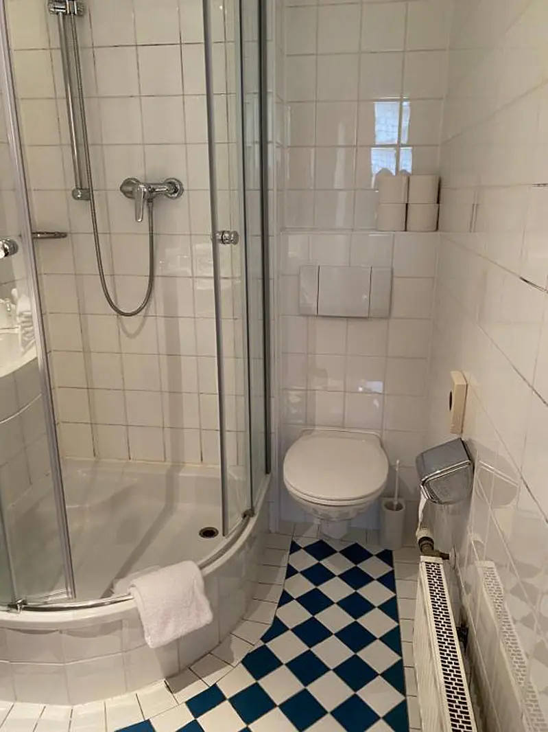 bath room: toilet, shower, bath robe - free of charge