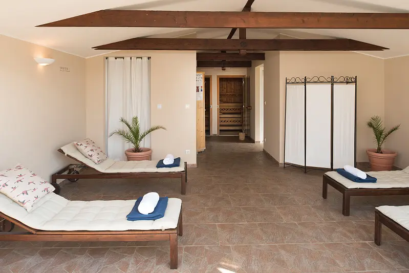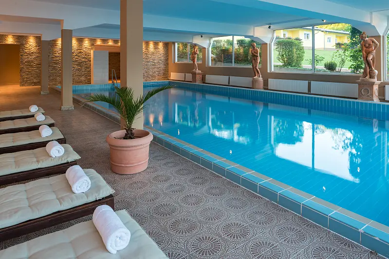 swimming pool area: children of 0 years. only in the company of an adult, indoor swimming pool 150 m², spa area: children of 16 years - free of charge, sauna, finish sauna, infrared cabin, massage - optional payable in resort, garden, lawn, deck chair - free of charge, sun umbrellas - free of charge