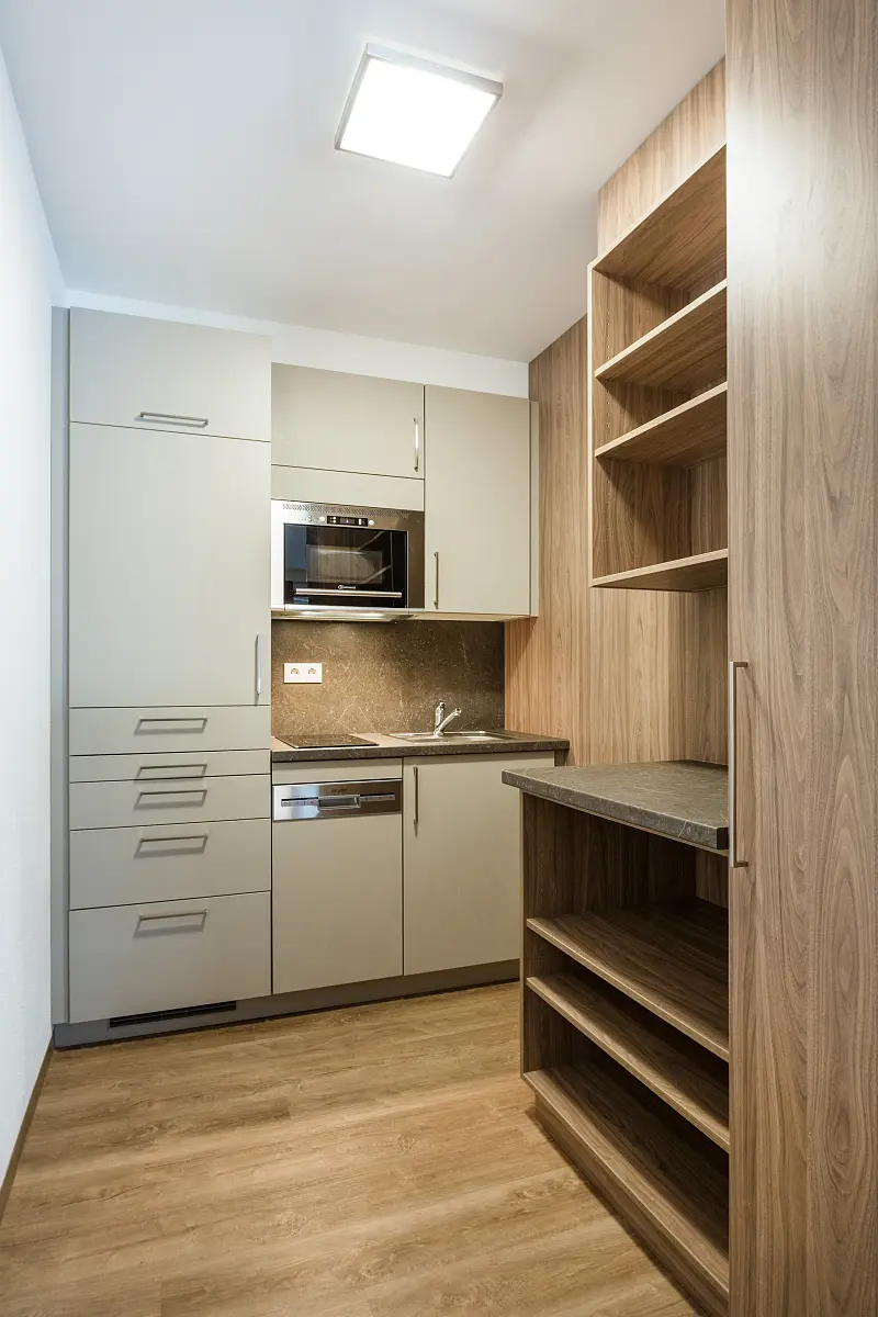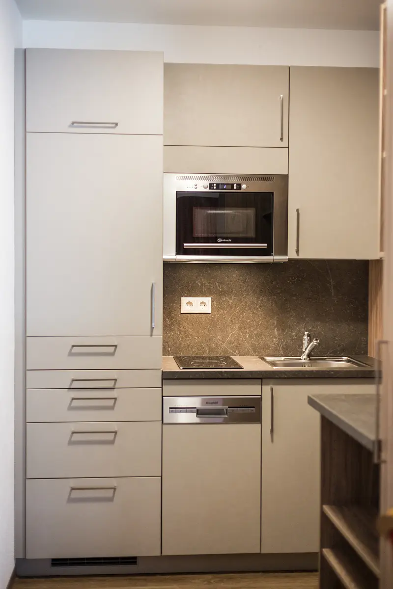 kitchen: kitchenette, dish washer, coffee machine, microwave