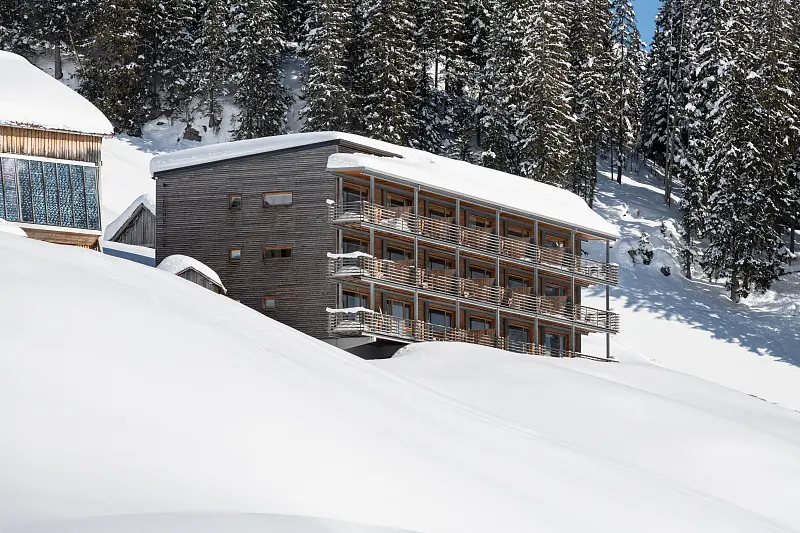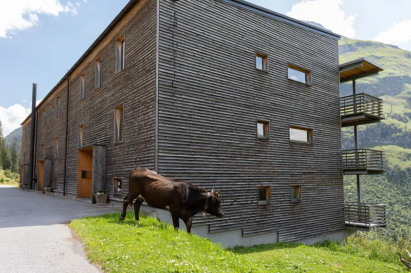 Holidays in the middle of nature - Lechblick holiday apartments on the Arlberg Whether family holiday, holiday with your dog or with friends and acquaintances - the "Appartementhaus Lechblick" in Warth am Arlberg is in an ideal location for all activities around the resort. Especially modern, freedom-loving people will feel at home here. Each of the 14 holiday apartments reflects a certain clarity and tranquility through the simple and modern furnishings. The larch wood floor, the beds made of local stone pine and the high-quality furniture invite you to experience it with all your senses. The large glass fronts reveal a unique panoramic view. Each apartment has a balcony on the sunny side of Warth. It invites you to soak up the sun and offers a wonderful view of the surrounding mountain peaks and forests as far as Lech am Arlberg. In winter, a private ski locker is available to you free of charge in the Berghotel Biberkopf (a 4-minute walk away). From the ski cellar there you can take the elevator directly to the valley station of the Dorfbahn. facility / Ambiance: comfortable, family friendly, modern target audience: sport & active travellers, group travellers, honeymooners, backpackers, couples, motorcycle travellers, nature lovers, roundtrip travellers, senior citizens, shorttrip travellers, young travellers, mountainbiker / bicycle travellers, cultural travellers, dog lovers, families, golf club travellers, homosexual, long term tourists, singles with kids