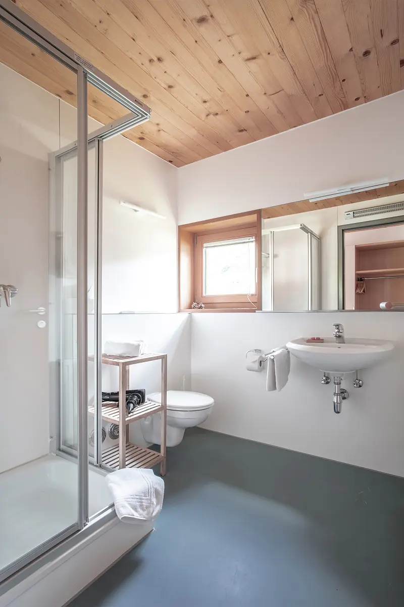 Especially modern, freedom-loving people will feel at home here. Each of the 14 holiday apartments reflects a certain clarity and tranquility through the simple and modern furnishings. The larch wood floor, the beds made of local stone pine and the high-quality furniture invite you to experience it with all your senses. The large glass fronts reveal a unique panoramic view.
