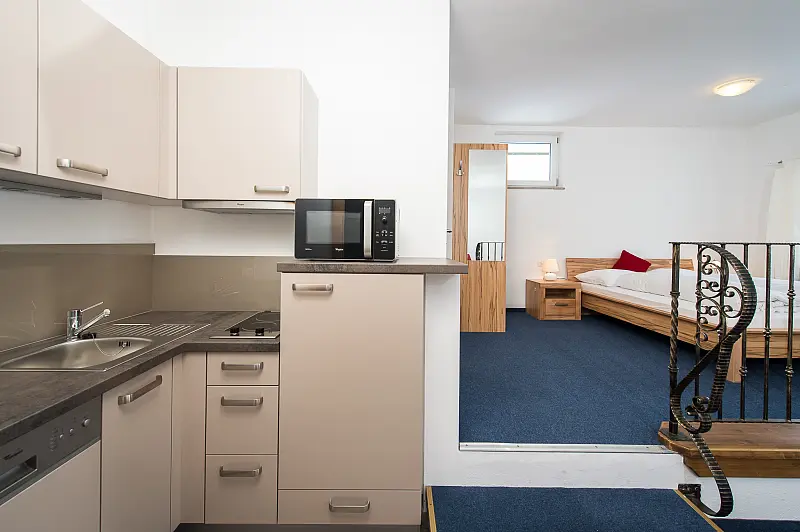 number of beds: double bed 1x, sofa bed for 2 persons 1x, cot as overcrowding possible: Yes