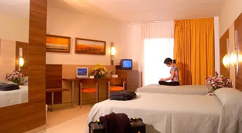 Fiecare dintre camerele spatioase este prevazuta cu urmatoarele facilitati: TV prin satelit, aer conditionat, telefon, terasa mobilata, baie cu cada, uscator de par, seif (contra cost). Camerele standard au 35 mp, camerele Premium au 23 mp si toate au capacitatea maxima de 4 persoane.