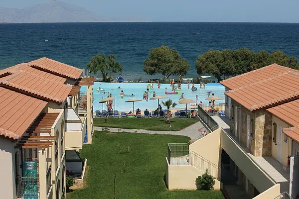 situat in statiunea Tigaki, la o distanta de cativa km de centrul orasului Kos, cu plaja privata.