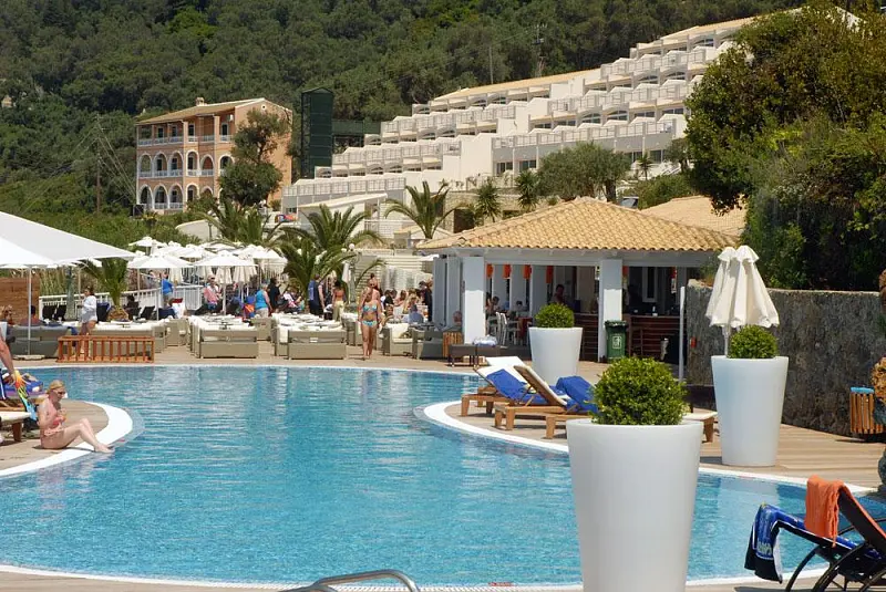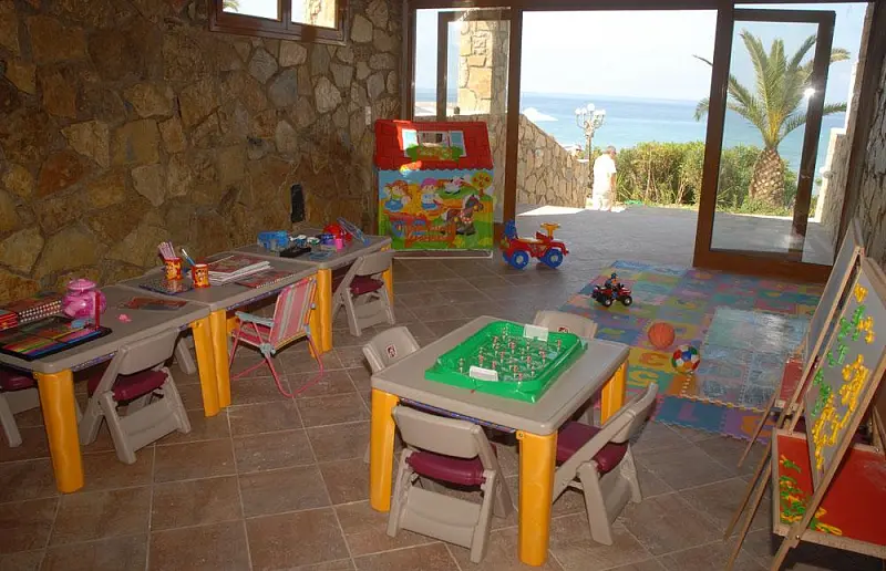 receptie 24h, conexiune WiFi gratuita in spatiile publice, parcare, schimb valutar, spalatorie, shuttle bus gratuit spre Pelekas, baby sitting, prosoape de plaja/piscina, doctor (la cerere), imprimanta, fax, copiator, laptop de inchiriat, mini market, magazin suveniruri, piscina exterioara cu apa proaspata, piscina pentru copii, kids club (pentru copii 4-12 ani), mini loc de joaca, amfiteatru in aer liber, program de animatie, volei de plaja, sala de sport, tenis de masa, masaj, tir cu arcul, sezlonguri si umbrele gratuite la piscina si plaja, sporturi nautice (dispobinile in apropierea hotelului), restaurant principal tip bufet, restaurant a la carte, menu vegetarian, meniu pentru copii, 2 baruri.