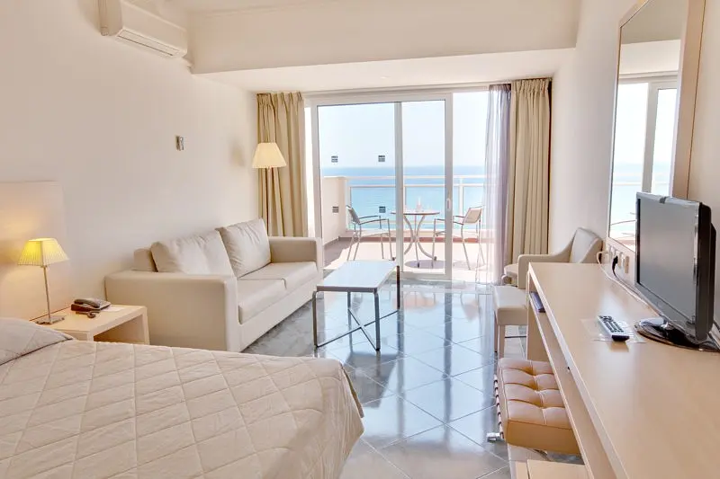 Camerele inland view sunt renovate si modernizate, in general localizate in spatele cladirii si sunt formate dintr-un dormitor cu pat dublu, baie cu cada/dus, aer conditionat cu control individual, TV LCD satelit, DVD player, telefon linie directa si extensie in baie, acces gratuit Internet WiFi, minifrigider, uscator de par, spalatorie, seif. Pot caza 2 adulti + 1 copil sau maxim 3 adulti. Camerele cu vedere la mare sunt renovate si modernizate si au in plus o canapea. Pot caza pana la 3-4 persoane.