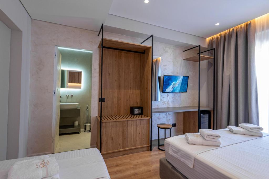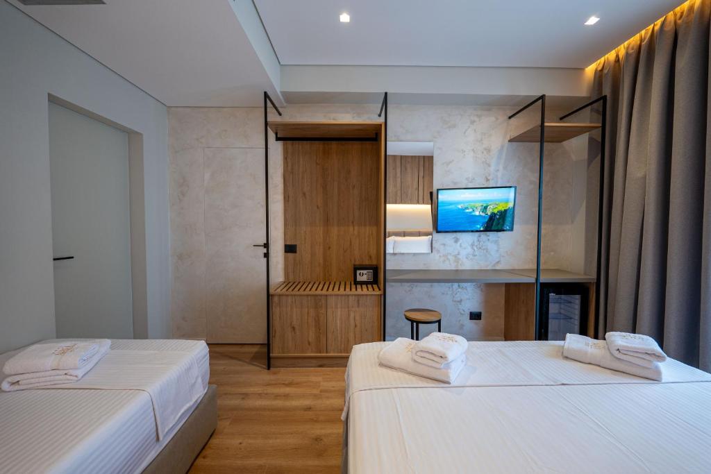 Cazare confortabilă: Hotelul Arel din Saranda oferă confort de 4 stele, cu camere cu aer condiționat, balcoane, băi private și vedere la mare. Fiecare cameră include birou, minibar și WiFi gratuit.