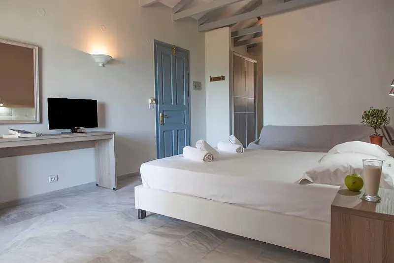 Toate camerele au aer conditionat, balcon sau terasa, baie cu dus, uscator de par, TV. Capacitatea maxima este de 3 persoane.