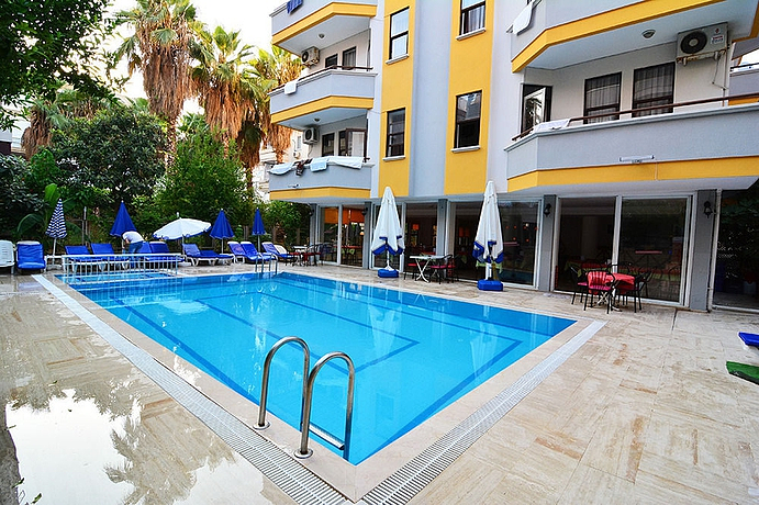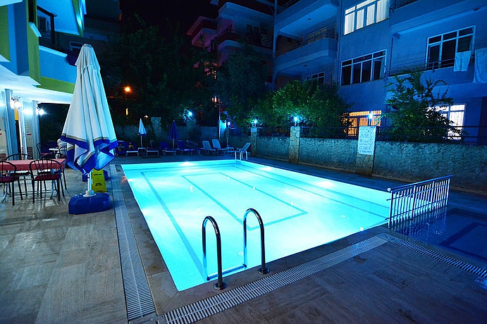 HOTEL: Este hotel ofrece cuenta con una recepción, un vestíbulo, tiendas, aire acondicionado y una sala de estar. Tiene alquiler de coches, personal multilingüe, una piscina, sombrillas, hamacas y un salón donde podrá ver la televisión. Los clientes pueden encontrar un parking, vigilante de seguridad, caja de seguridad, atención médica, servicio de lavandería, servicio de limpieza, servicio de cambio de moneda y servicio de planchado. También ofrece a sus clientes una piscina para niños y habitaciones familiares. SITUACIÓN: Este establecimiento, está en Alanya, a 200 metros dispone de una playa. A 2 kilómetros está situado Alanya, a 2 kilómetros del establecimiento los clientes pueden encontrar Red Tower, está a 135 kilómetros del aeropuerto AYT. Está situado a 5 kilómetros de Alanya Castle, OTRAS: En lo referente a los gastronómico el establecimiento ofrece desayuno servido en estilo buffet. INSTALACIONES: Se ofrece a los huéspedes baño turco, una sauna, hammam y servicio de masajes. Puede realizar actividades como ping pong y billar. MÉTODOS DE PAGO: Se admite Visa, Mastercard y Eurocard.