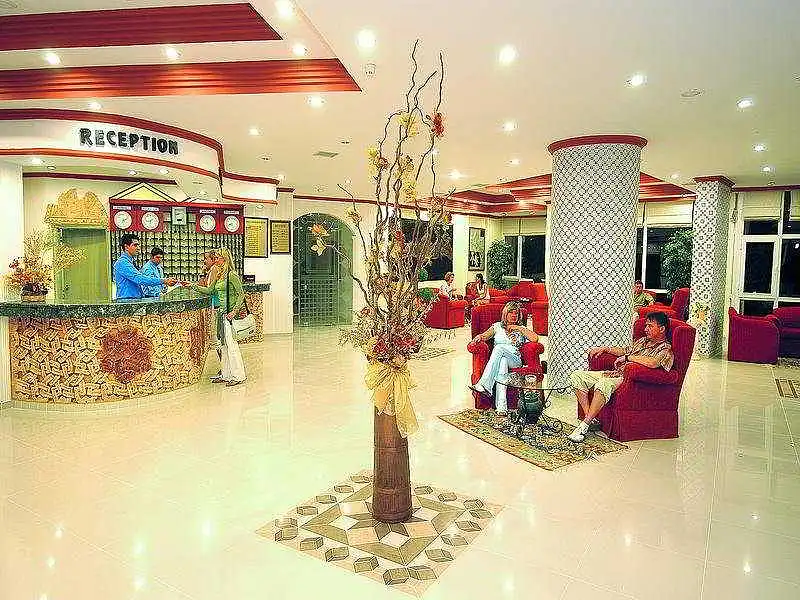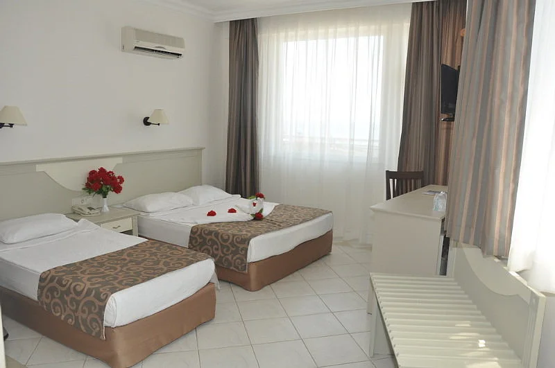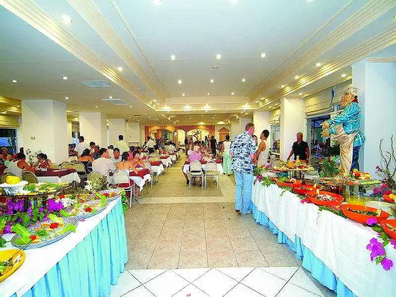This attractive hotel is located in Turkler, a beautiful green resort area just outside of the famous city of Alanya. The hotels comfortable rooms are stylishly decorated and air-conditioned, each with sea or mountain views. Guests may enjoy a day of thrilling water sports including windsurfing, parasailing and diving at the nearby beach, or stay in the hotel to relax by the sparkling indoor and outdoor pools or play on the waterslides. Alternatively, visitors can take a day trip to Alanya or Side to see ancient ruins, the stunning Seljuk citadel and castle, or fascinating caves. The hotel puts on a lively nightly entertainment programme, and children are well cared for with a fun childrens club, babysitting service on request, separate childrens buffet and high chairs available in the hotel restaurant. Ideal for a holiday spent luxuriating on the beach or finding adventure in outdoor sports, this hotel is a fantastic choice for families and couples alike.