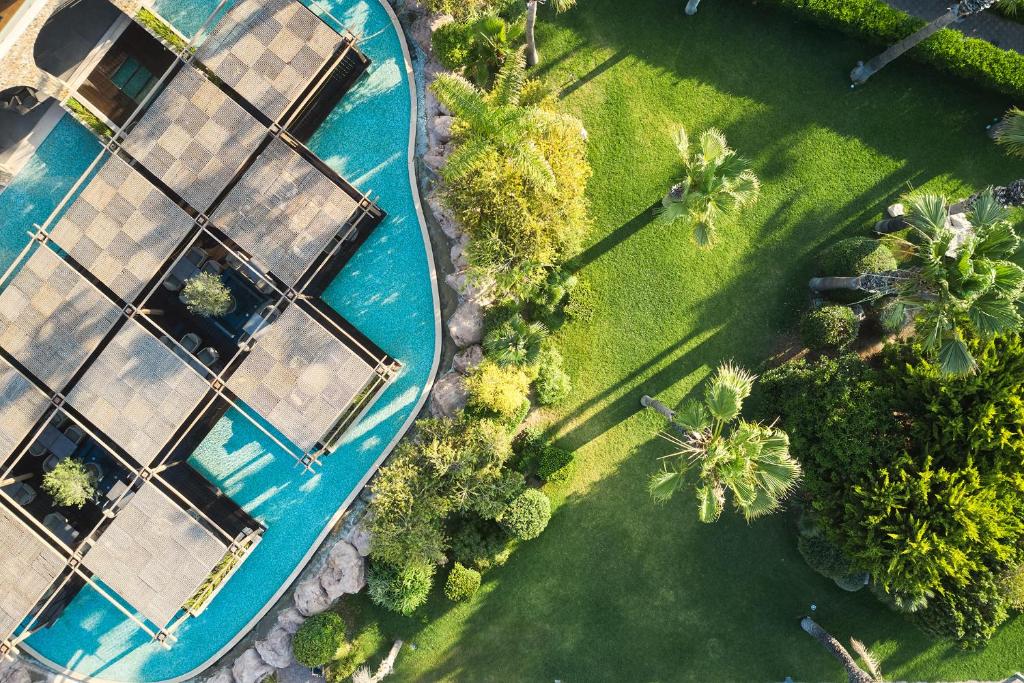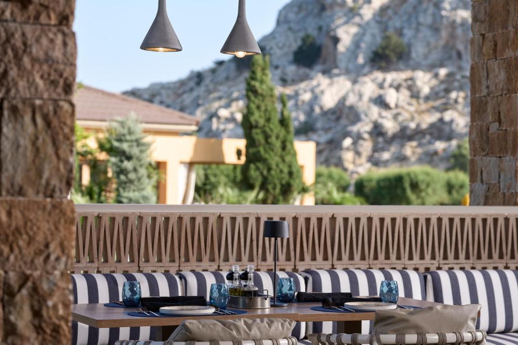 Zona Eptà Pigès (Șapte Izvoare) se află la 7 km de Atlantica Aegean Blue. Cel mai apropiat aeroport este Aeroportul Internațional Rhodos, situat la 19 km de unitatea de cazare.
