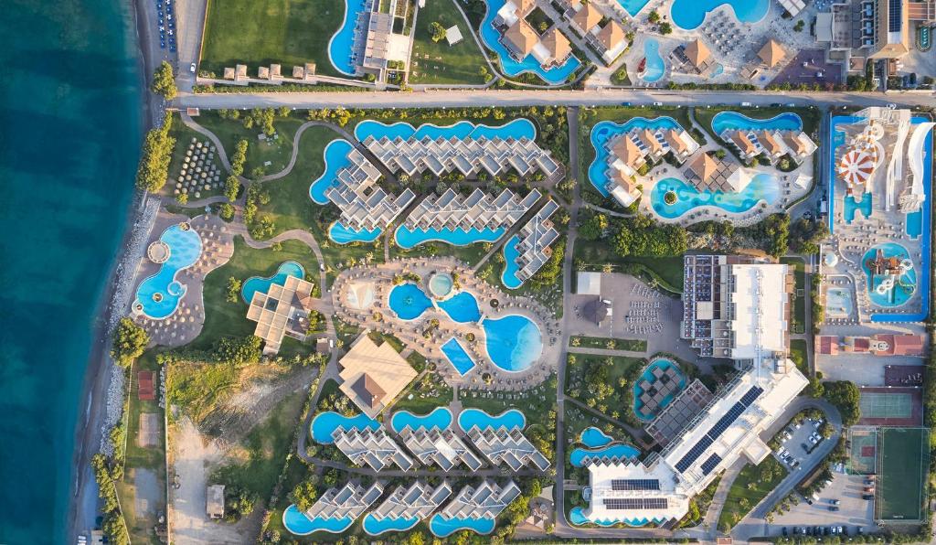 Atlantica Aegean Blue se află in Kolimbia, la 2 km de plaja Tsambika, si oferă cazare la malul mării cu diverse facilități, precum un bar, o grădină si o terasă. Proprietatea are recepție cu program nonstop, restaurant, parc acvatic și piscină sezonieră in aer liber. La unitatea de cazare se oferă program de divertisment seara, iar oaspeții au la dispoziție spațiu pentru depozitarea bagajelor.