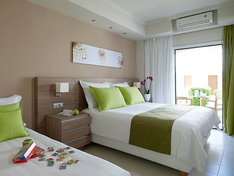 Camerele duble au pat dublu si pat suplimentar, baie cu cada, balcon sau terasa, prosoape și lenjerie ce se schimba de 3 ori pe saptamana, curatenie si servit zilnic, telefon internațional direct, mini-frigider, aer conditionat individual, TV prin satelit, uscator de par, seif (contra cost), pardoseala cu gresie, vedere interioara. Camerele Family au 1 pat dublu si 2 paturi suplimentare, 2 zone de dormit cu usa glisanta care separa adultii de zona copiilor (camerele de familie au dus in loc de cada).