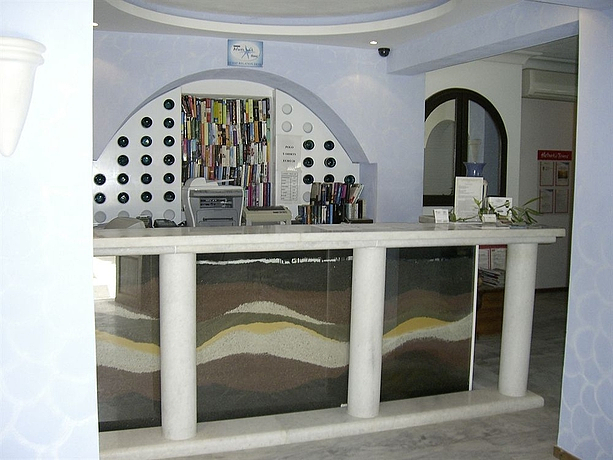 HOTEL: Este hotel se construyó en 1999, cuenta con 33 habitaciones, un vestíbulo con recepción, caja de seguridad, un salón donde podrá ver la televisión, internet con cargo adicional y un parking de pago directo. SITUACIÓN: Este hotel, está en Santorini, está situado en la playa de Perivolos. A 10 kilómetros está situado FIRA, HABITACIÓN: Las habitaciones cuarto de baño con ducha o bañera, aseo, televisión vía satélite, teléfono de línea directa, minibar, secador de pelo, balcón o terraza y aire acondicionado individual. INSTALACIONES: Con cargo extra puede encontrar una piscina con un chiringuito.