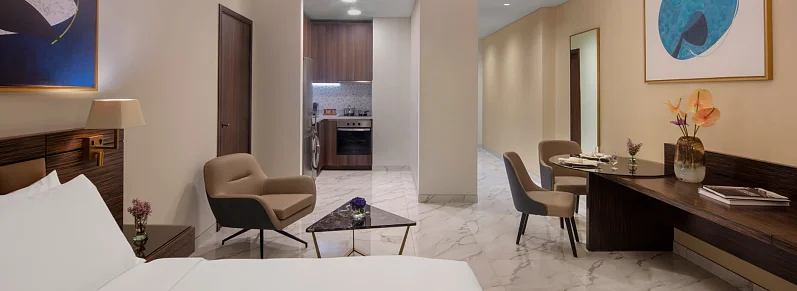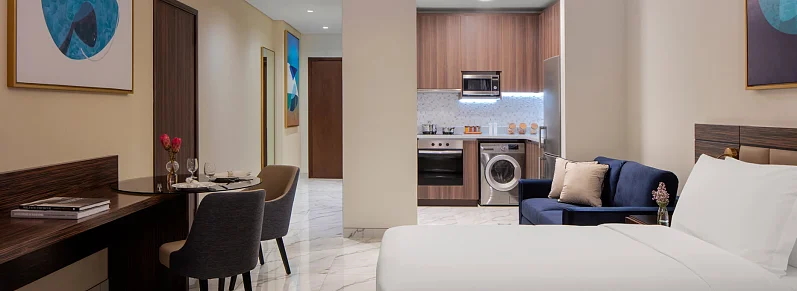 The perfect blend Take away the stress of city living with modern dwelling in a superb location. Feel the city thrive around this superb new destination. Perfectly located for business and pleasure, AVANI Palm View Dubai Hotel & Suites offers a stylish new option for longer stays. Drop off your keys and get ready to enjoy the effortless lifestyle with the city and beach within easy reach.