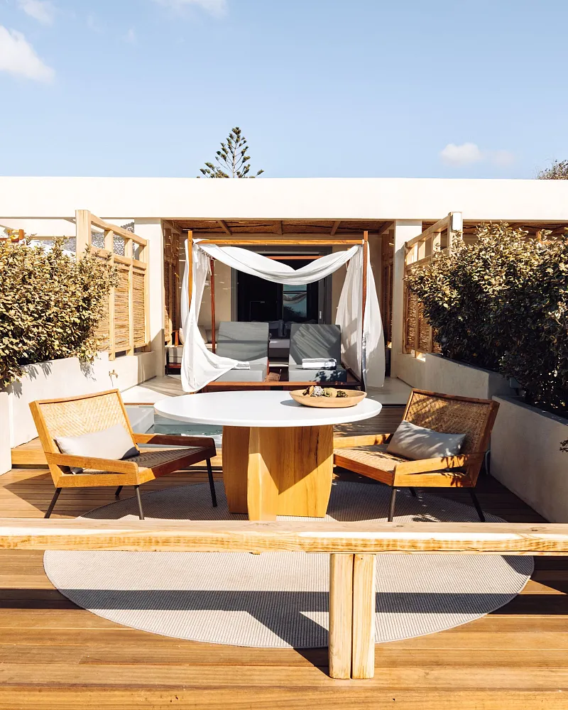 In shades of summer hay, Avgoustos natural materials create a visual flow, unifying the interior and the exterior spaces of each Suite, along with the element of water that manifests the Cycladic essence of well-being. From here, you can touch the island summer magic that we all long to return to. Overlooking the turquoise waters of Agia Anna, Avgoustos Luxury Suites is the place to experience summer infused effortless-chic living.