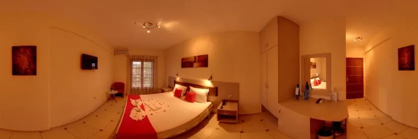 Camerele luminoase și confortabile sunt dotate cu aer condiționat, TV, mini-frigider și balcon - multe dintre ele oferind priveliști spre Marea Egee. La restaurantul hotelului puteți savura preparate tradiționale grecești și internaționale, iar barul de la piscină este locul ideal pentru un cocktail răcoritor.