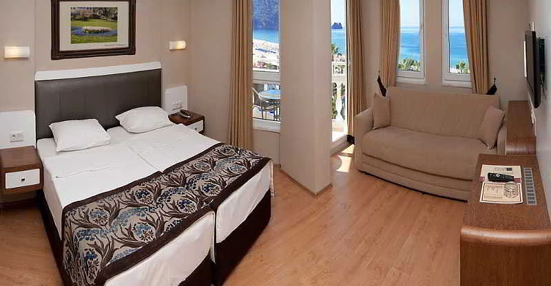 Set in a great location on Cleopatras Beach in central Alanya with views of the castle set high on a hilltop, this hotel is a great base for beach lovers and those who wish to be within easy reach of the resorts many amenities. The pedestrianized shopping centre is approximately a 10-minute walk and public transport runs close to the hotel. The hotel features a pleasant pool area with a cafe terrace leading onto the beach. There is also a sauna and Turkish bath for guest leisure, and guests will find drinks and snacks at the three bars and rich and varied buffet-style meals at the in-house restaurant.