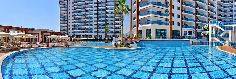 This apartment complex boasts a prime setting in Alanya. The complex is ideally situated close to a number of attractions and amenities. Guests will find themselves just 13 km from the centre of the bustling resort. A private beach can be found just 2 km away, where guests can enjoy a host of exciting water sports, or simply lie back and revel in the beauty of the surroundings. The complex comprises elegantly-designed apartments and studios, set in 3 blocks, amidst 26,000 metres squared of land. The accommodation options are superbly designed, blending luxury and convenience. The complex features an extensive range of facilities and services, meeting the needs of every type of traveller.