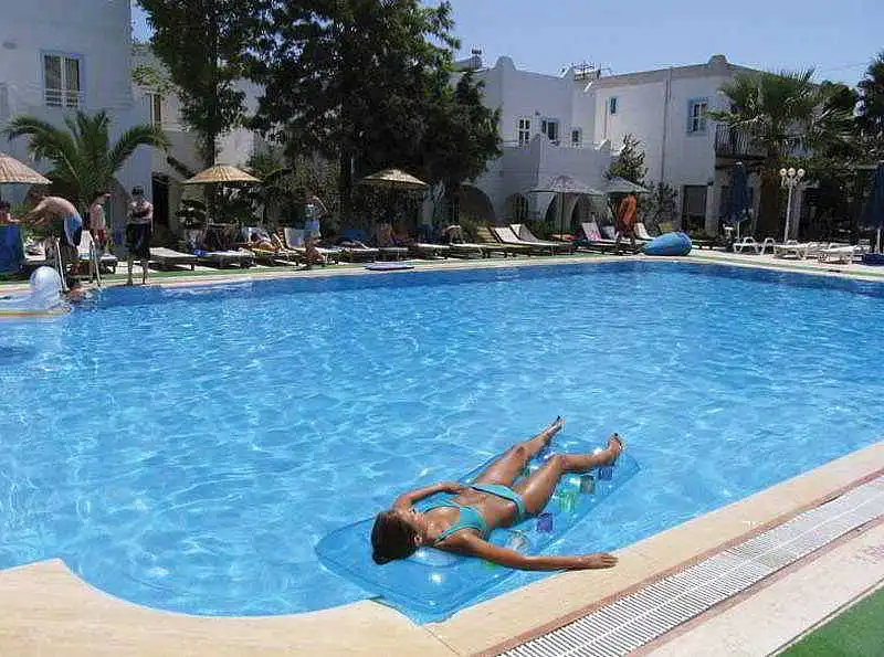This charming property enjoys a convenient location in Gumbet, a lively beach resort and a popular tourist destination on the Aegean coast of Turkey. This family owned property offers the perfect base from which to discover all the hidden treasures of this vibrant region, offering a quiet space and comfort of high quality. The guest rooms range from standard to deluxe rooms and are warm, bright and simply furnished, all with air conditioning and a private balcony. Those travelling with children may take advantage of the family accommodation units. The pool area consists of two separate sections for adults and children and guests can spend sunny afternoons taking a refreshing dip or sipping a refreshing drink. The onsite restaurant offers a wide choice of traditional local recipes as well as international culinary creations to meet all visitors expectations.