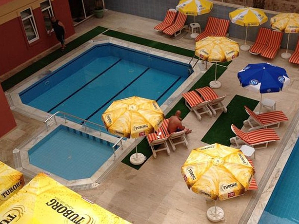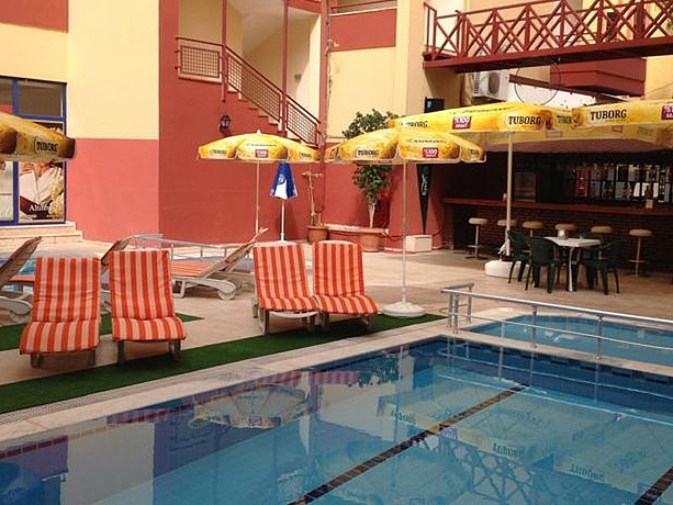 HOTEL: El hotel tiene una piscina, una piscina para niños, un restaurante, un bar y un parking. SITUACIÓN: Este establecimiento, está a unos 450 metros de Playa Cleopatra, a 500 metros puede encontrar el centro de la ciudad de Alanya. A 120 kilómetros está situado el aeropuerto, cerca del museo arqueológico y el castillo Alara. HABITACIÓN: Las habitaciones cuentan con cuarto de baño con ducha, balcón, aire acondicionado con cargo extra, televisión, teléfono de línea directa, internet sin cables, caja de seguridad con cargo extra y secador de pelo.
