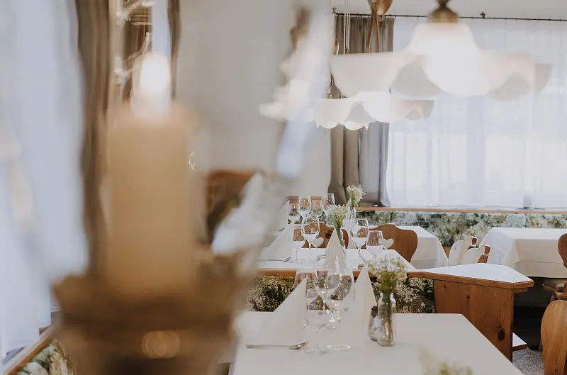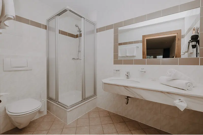 The B&B Hotel "DIE BERGQUELLE" in the Salzburg region is located in the middle of Flachau, right on the slopes of the Achterjet valley station. Hiking trails, summer toboggan run, adventure playground, ski slopes, cross-country ski trails, restaurants and various shops are in the immediate vicinity. The rooms are well equipped with shower/WC, TV, safe, WiFi, hairdryer, mini fridge and most have a balcony. The perfect start to the day begins with a good breakfast - lured by the smell of fresh coffee, every guest's palate will get their money's worth at the extensive breakfast buffet. After a day of hiking or skiing, you can relax in our small but fine wellness area with Finnish sauna, steam bath and Physiotherm infrared cabin (open on request in summer) or you can simply relax in our garden with sun loungers and enjoy the peace and quiet in the countryside. Let yourself be pampered by the familiar, homely atmosphere of our house and feel at home with a glass of wine or just a small snack in our guest room. * in summer: the restaurant with a small snack menu is open from Thursday to Saturday in June and September and daily in July and August (closed on Tuesdays) from 12:00 to 22:00, snack menu / hot meals from 18:00 to 20:00 (for an additional charge as per notice on site) * in winter: the restaurant with a small snack menu is open daily from 12:00 to 23:00 (closed on Tuesdays), snack menu / hot meals from 18:00 to 20:00 (for an additional charge as per notice on site) * in summer: reception opening times: daily 08:00 - 17:00 (check-in arrangement by telephone if arriving after 17:00) * in winter: reception opening times: daily 08:00 - 18:00 (if arriving after 18:00 please inform us briefly) * in summer: wellness area on Open on request from 4:00 p.m. to 7:00 p.m. (registration required at reception in the morning) * in winter: wellness area open daily from 4:00 p.m. to 7:00 p.m. Information on pets: If you are traveling with a dog, you must bring your own basket and a dog blanket. Please understand that your four-legged friends are not allowed in the restaurant or in certain room categories. If you bring a dog, the hotel reserves the right to charge for any final cleaning that may be required. Please note: The "Single room with sloping ceiling (SI01)" type room only has a ceiling height of 1.65 meters in the shower cubicle due to the sloping ceiling. facility / Ambiance: comfortable, family friendly, rustic, small / homey, home-made target audience: sport & active travellers, group travellers, low budget travellers, business travellers, couples, motorcycle travellers, nature lovers, roundtrip travellers, senior citizens, shorttrip travellers, singles, young travellers, mountainbiker / bicycle travellers, dog lovers, families, golf club travellers, singles with kids