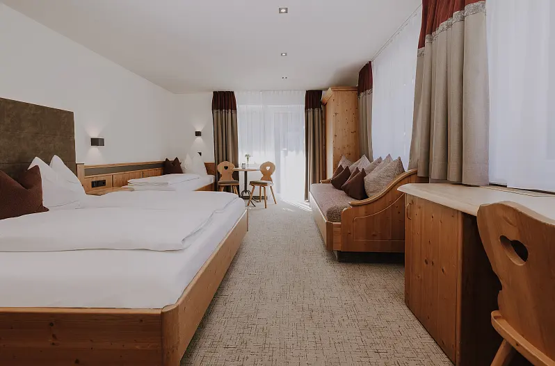 The B&B Hotel "DIE BERGQUELLE" in the Salzburg region is located in the middle of Flachau, right on the slopes of the Achterjet valley station. Hiking trails, summer toboggan run, adventure playground, ski slopes, cross-country ski trails, restaurants and various shops are in the immediate vicinity. The rooms are well equipped with shower/WC, TV, safe, WiFi, hairdryer, mini fridge and most have a balcony. The perfect start to the day begins with a good breakfast - lured by the smell of fresh coffee, every guest's palate will get their money's worth at the extensive breakfast buffet. After a day of hiking or skiing, you can relax in our small but fine wellness area with Finnish sauna, steam bath and Physiotherm infrared cabin (open on request in summer) or you can simply relax in our garden with sun loungers and enjoy the peace and quiet in the countryside. Let yourself be pampered by the familiar, homely atmosphere of our house and feel at home with a glass of wine or just a small snack in our guest room.