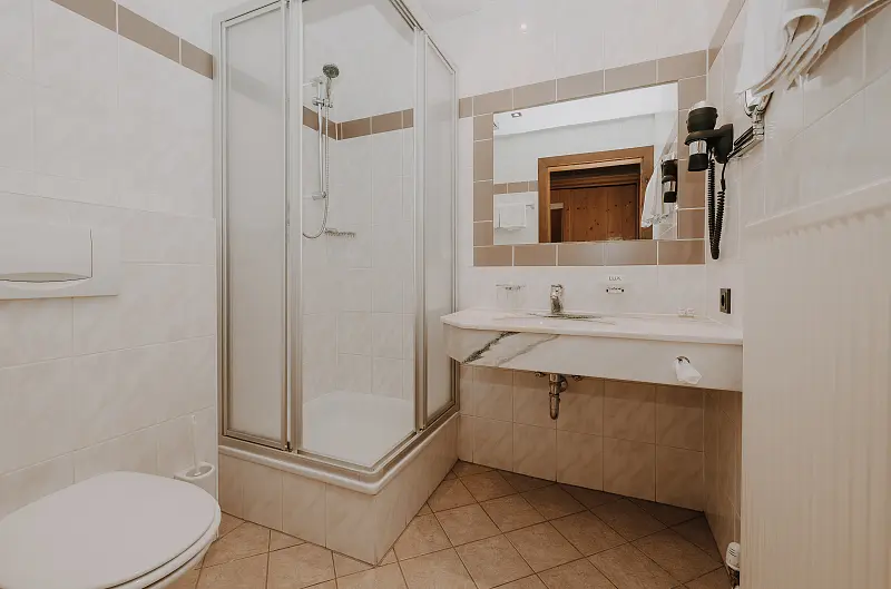 bath room: toilet, hair dryer, shower, bath robe - on request, optional payable in resort, EUR 10.00 per person and stay