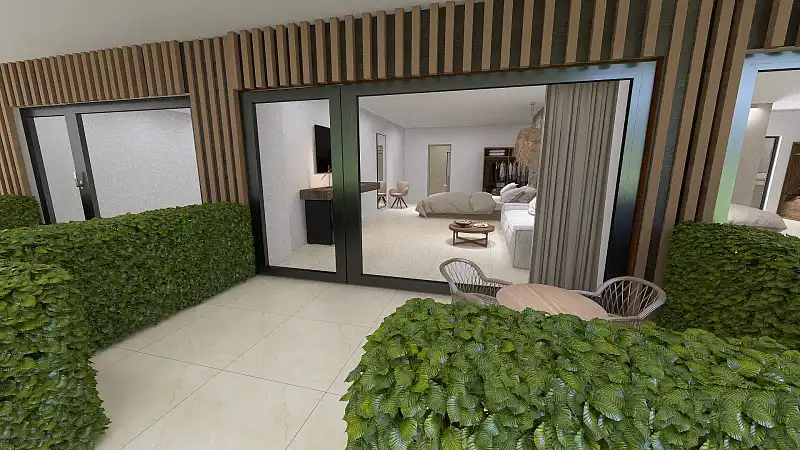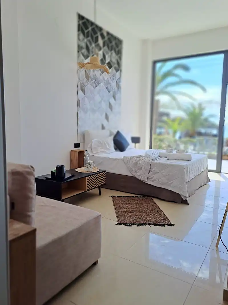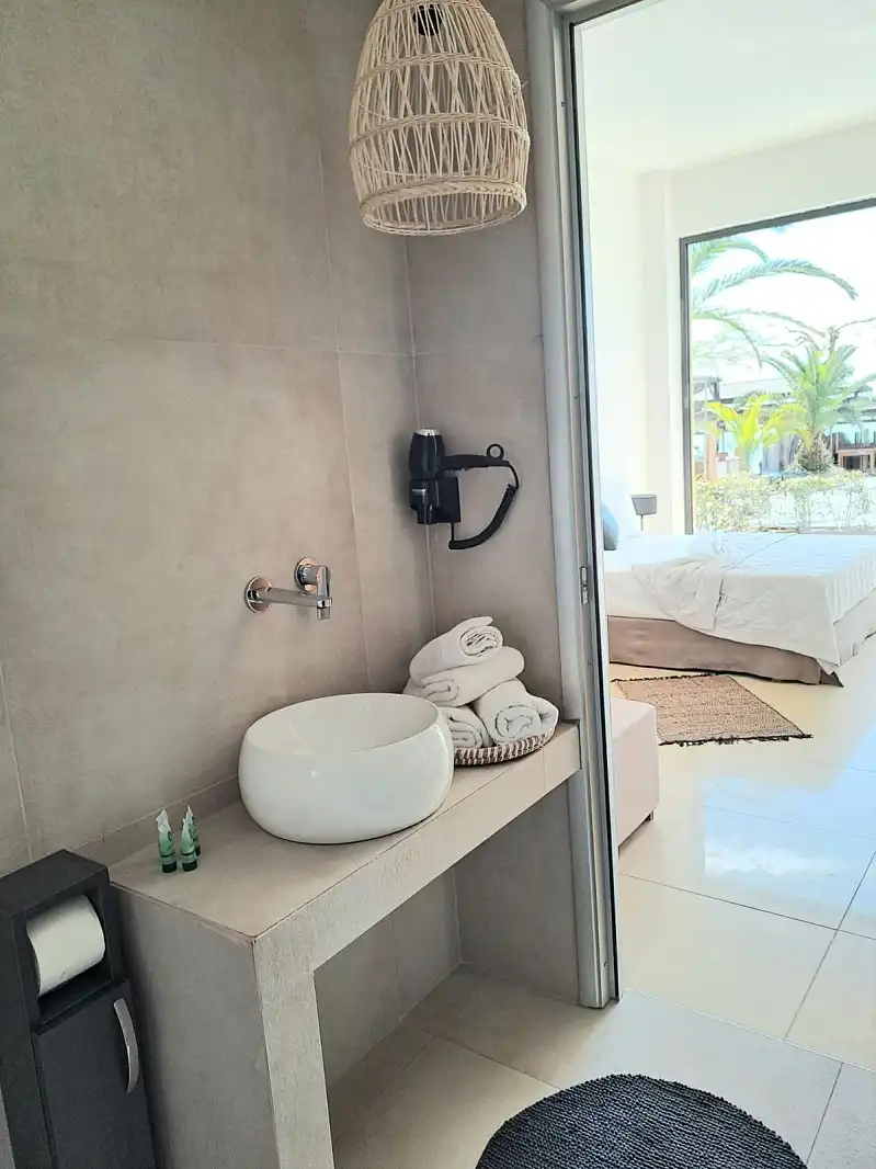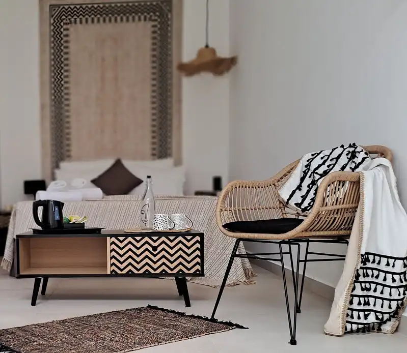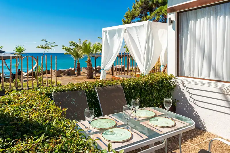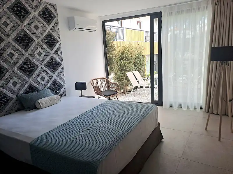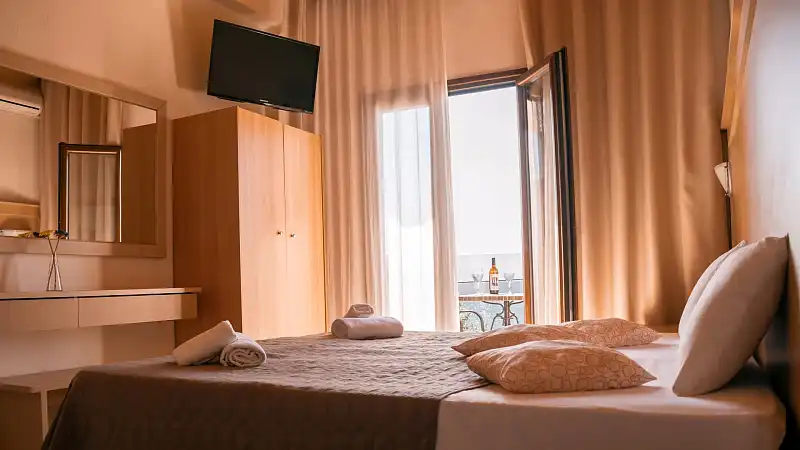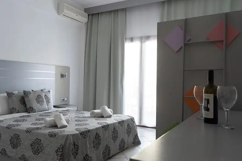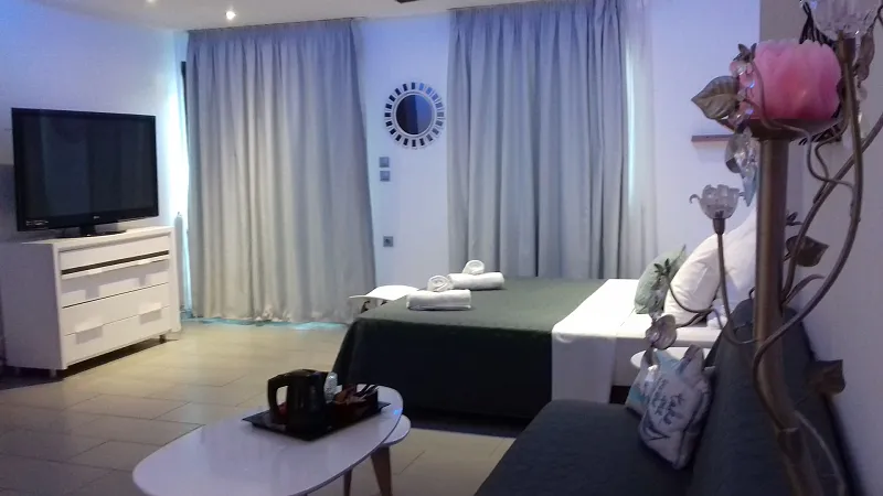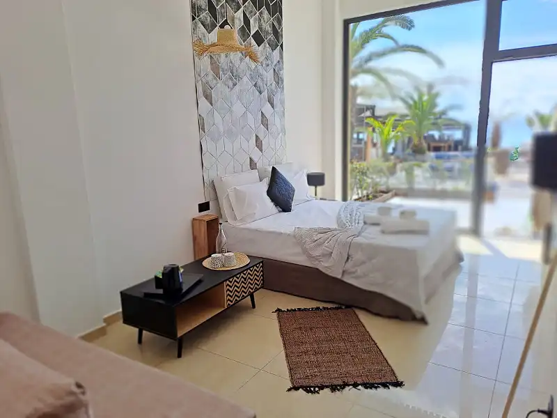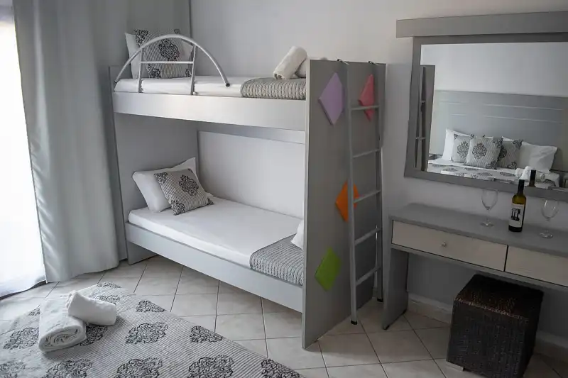 The brand new cabana suites consist of a double bed and a sofa, large enough when opened for 2 children or young adults or 1 bunk bed. Some of them with a wonderful sea view (extra charge upon request, subject to availability and additional charge +10%)