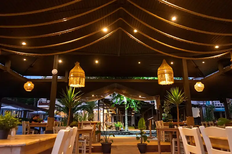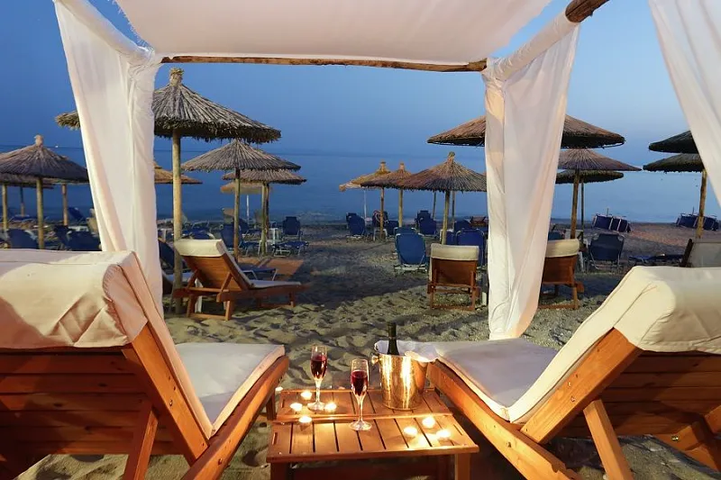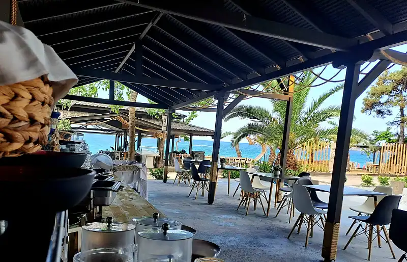 Free umbrellas and sunbeds are provided on the beach when using the bar or restaurant.