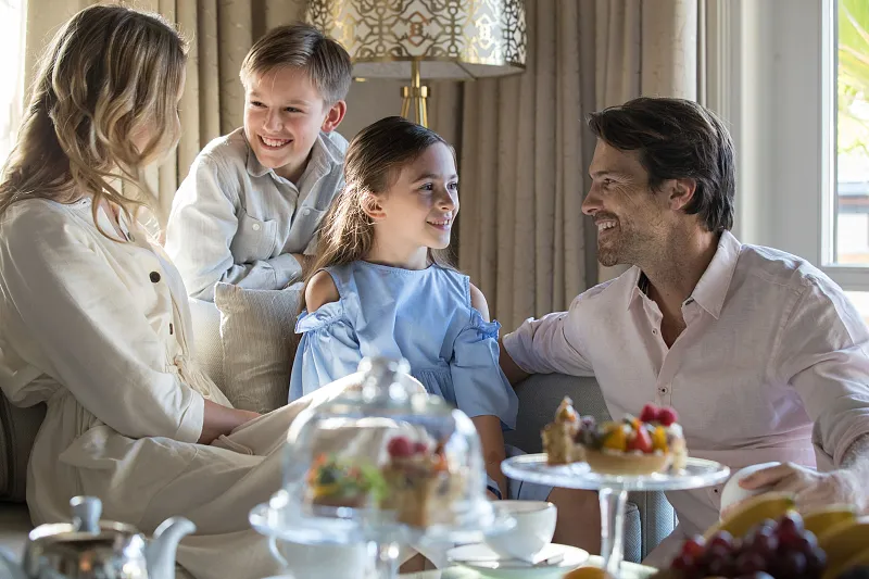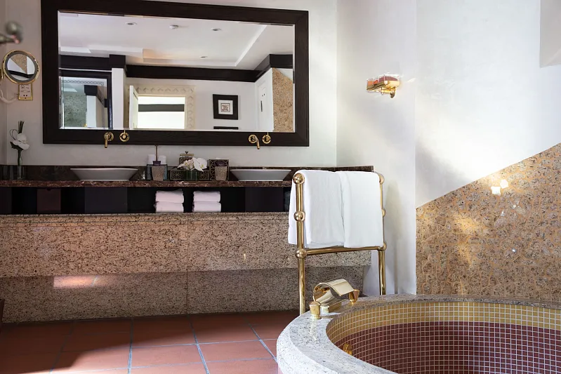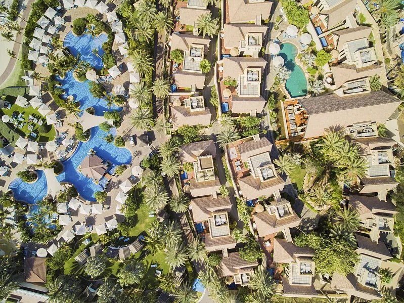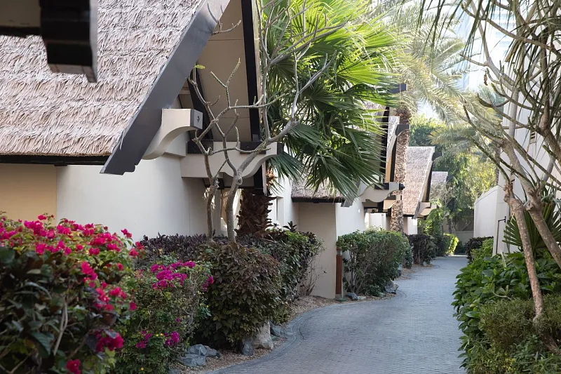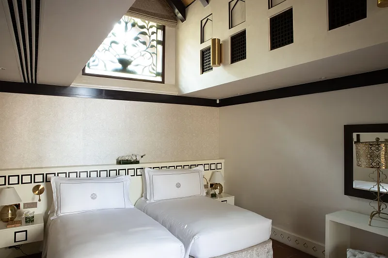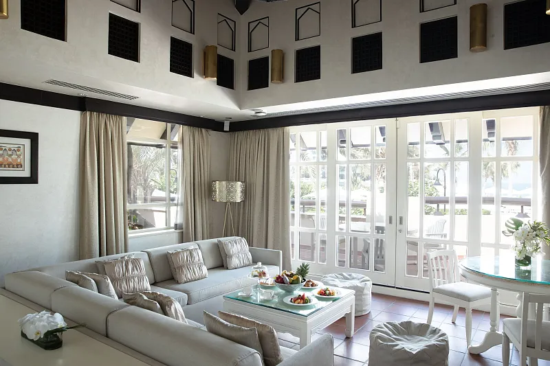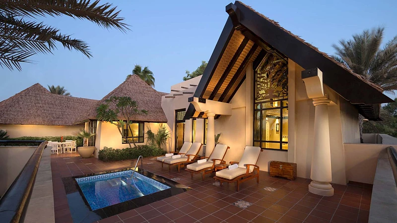 Nestled between lush foliage and water features, each villa offers guests the luxury of highly personalised service coupled with exclusive amenities. All interiors are decorated in comforting hues and Arabian-inspired furniture.