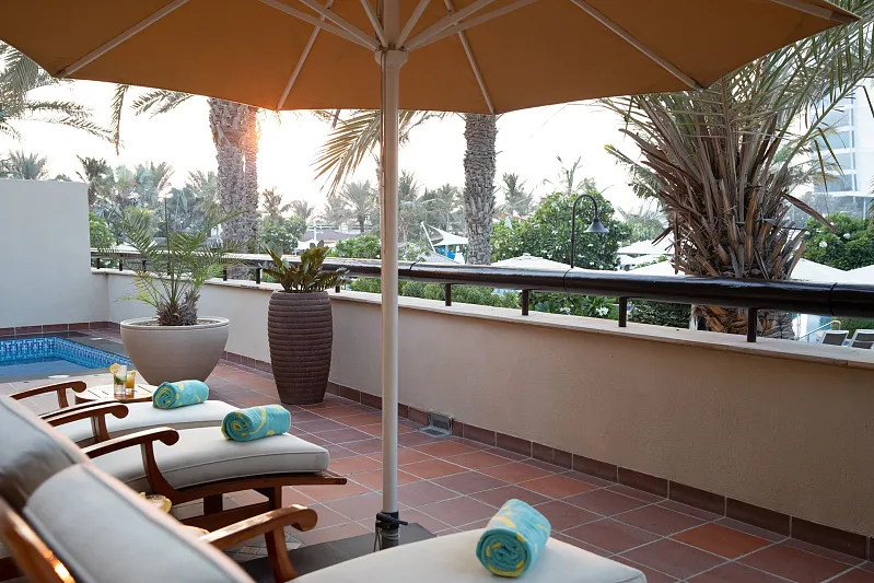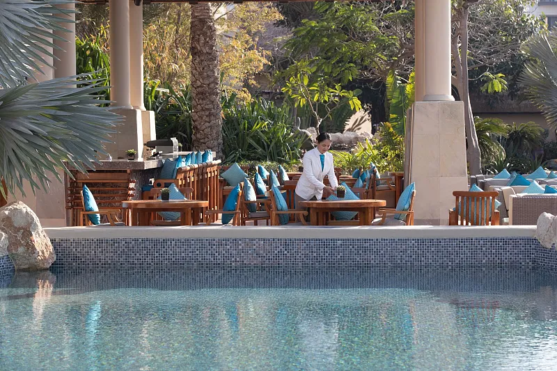 Located outside the hotel building, the Executive Pool Bar offers a selection of freshly prepared food and beverages exclusively for the use of guests staying in Beit Al Bahar.