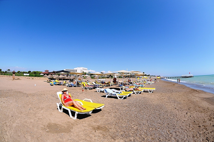 HOTEL: El hotel cuenta con una recepción, tiendas, una sala de conferencias, peluquería, un vestíbulo, un salón, un pequeño supermercado y aire acondicionado. Los clientes tienen a su disposición un patio de juegos para los mas pequeños, personal multilingüe, un parking, caja de seguridad, despertador, servicio de lavandería, servicio de limpieza y zona wifi. Además los clientes tienen a su disposición una discoteca. SITUACIÓN: A 2 km podrá encontrar la playa. El hotel, está a 7 kilómetros de Belek, a 4 km se dispone de Kadriye, situado a una distancia de 35 kms de Antalya, a 58 km puede disponer del aeropuerto AYT. INSTALACIONES: Los clientes tienen a su disposición una piscina con una zona para niños dependiendo de la temporada y un bar de piscina. En la playa puede encontrar sombrillas y tumbonas. Puede realizar actividades como ping pong y billar. Además cuenta con un gimnasio, centro de bienestar, baño turco, una sauna, hammam y servicio de masajes. OTRAS: En cuanto a la gastronomía el establecimiento cuenta con desayuno dispuesto en buffet. También se puede encontrar un bar lounge. MÉTODOS DE PAGO: Se admite Mastercard, Eurocard y Visa.