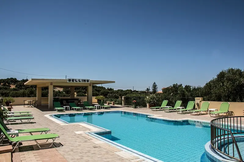 Bellino is a relaxed, warm and friendly complex, located only 400 metres from lively Hersonissos and 400 metres from the traditional village of Koutouloufari. Thanks to Bellino's convenient location, these pretty apartments give you easy access both to the old traditional villages and the new commercial areas of Crete.Being away from the noise of the town it offers a relaxing and safe environment ideal for families. Paying attention to every detail, the owners have managed to create a unique atmosphere in their effort to offer their guests an unforgettable holiday. You can have a dive, or just lie under the greek sun in our state of the art swimming pool and if you need a relaxing drink, you can visit our pool bar for the most amazing cocktails!The outdoor pool with the sunbeds and the shaded area gives you the relaxing moments you dream of during your holidays.Heraklon airport is 25 km away.