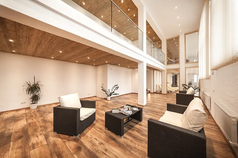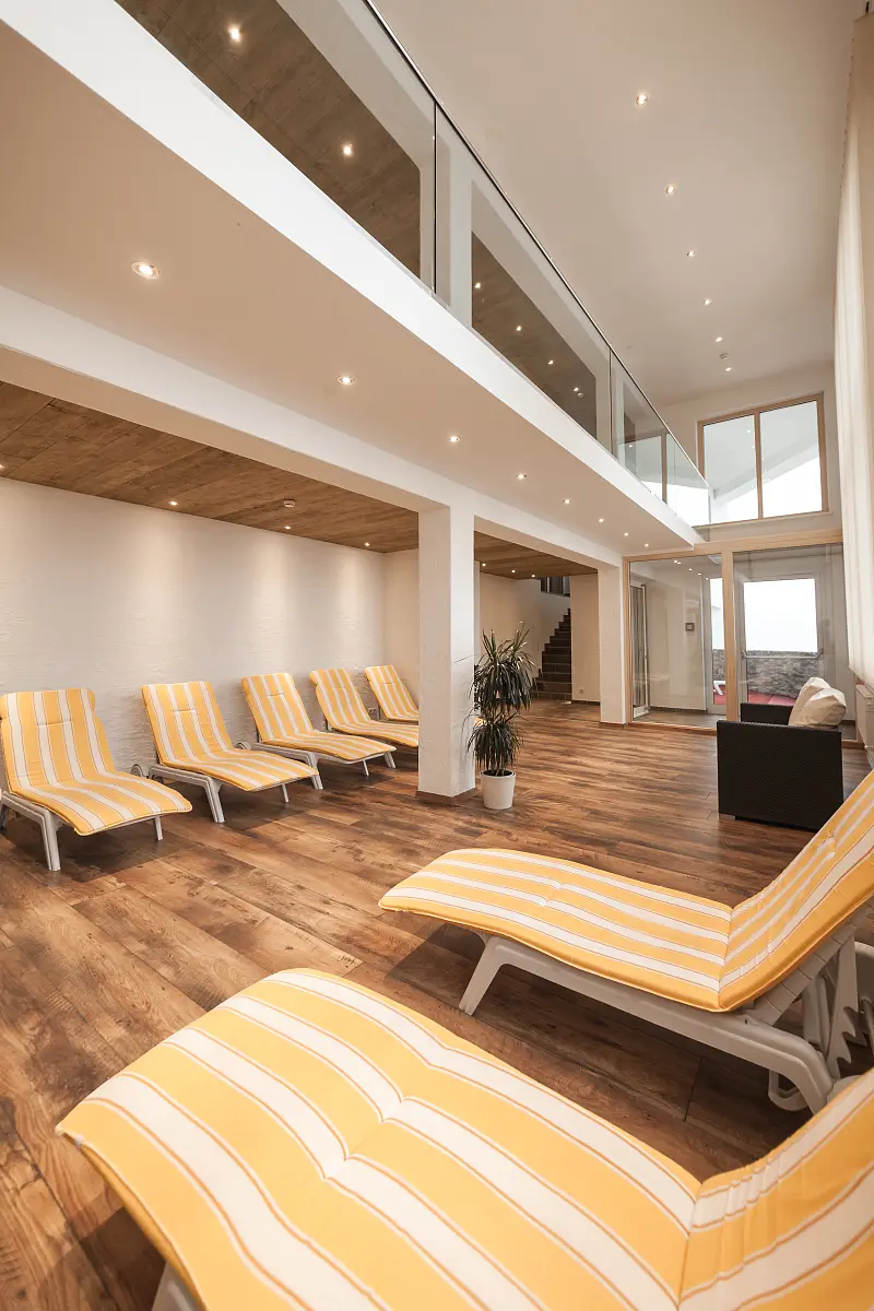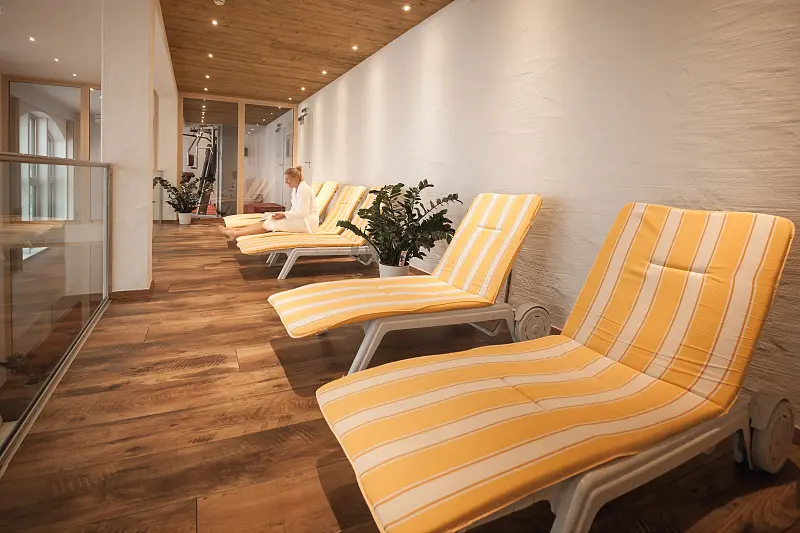 size wellness area 600 m², indoor swimming pool 5 m x 11 m, steam bath - free of charge, finish sauna - free of charge, bio sauna - free of charge, infrared cabin - free of charge, tepidarium - free of charge, relax room, massage - optional payable in resort, deck chair - free of charge