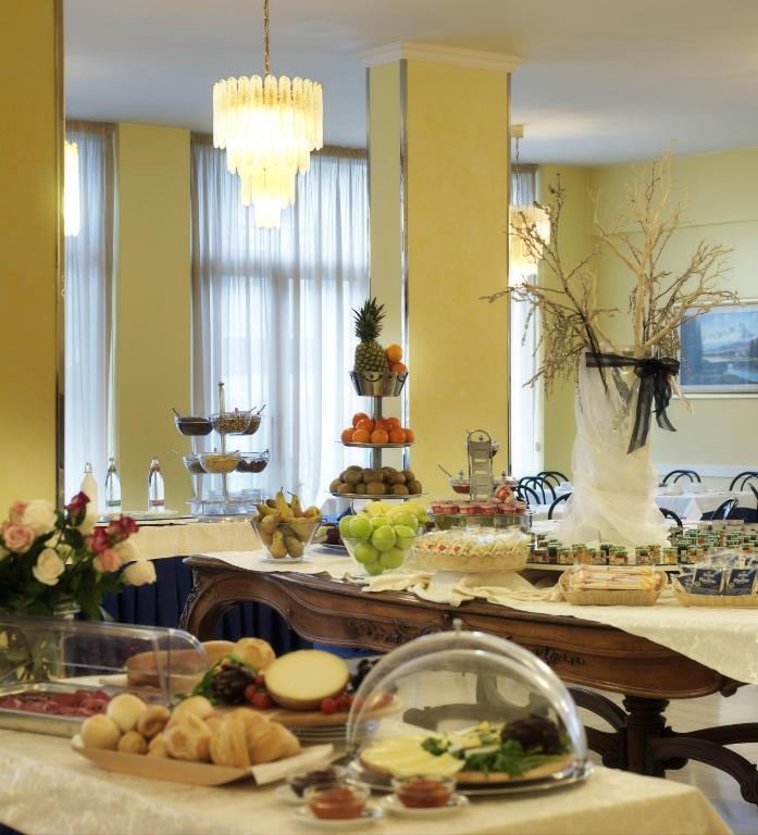 In fiecare dimineață se oferă un mic dejun tip bufet, cu prăjituri proaspăt coapte și produse de patiserie. Restaurantul, situat la 50 de metri de hotel, servește specialități locale și este deschis din luna mai pană in septembrie.