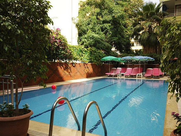 SITUACIÓN: Este hotel, está a unos 100 metros del mar de Alanya. A 2 metros puede disfrutar de la playa. A 300 metros hay una parada de autobús. Se sitúa a 700 metros de La Kizil Kule, HABITACIÓN: Dispone de habitaciones con aire acondicionado, balcón, suelo de baldosas, baño con aseo, una ducha y televisión vía satélite. Algunas habitaciones cuentan con vistas al mar. INSTALACIONES: Este establecimiento cuenta con una piscina con terraza y tumbonas. En cuanto a lo gastronómico hay disponible un restaurante. Se ofrece a los huéspedes servicio de habitaciones. Hay disponible un bar de cócteles.