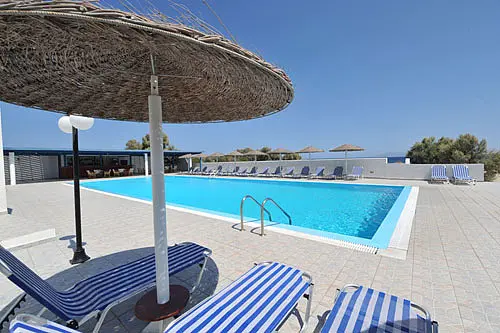 Hotelul este situat intr-o locatie linistita, pe plaja din Agia Paraskevi, la 300m de statia de autobuz, la 100m de mini market, la 2km de Kamari si la 1,5 km de aeroport.