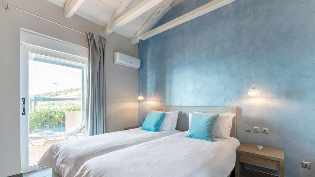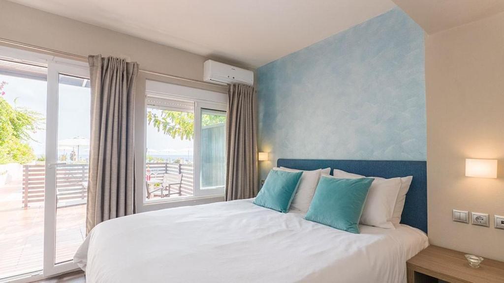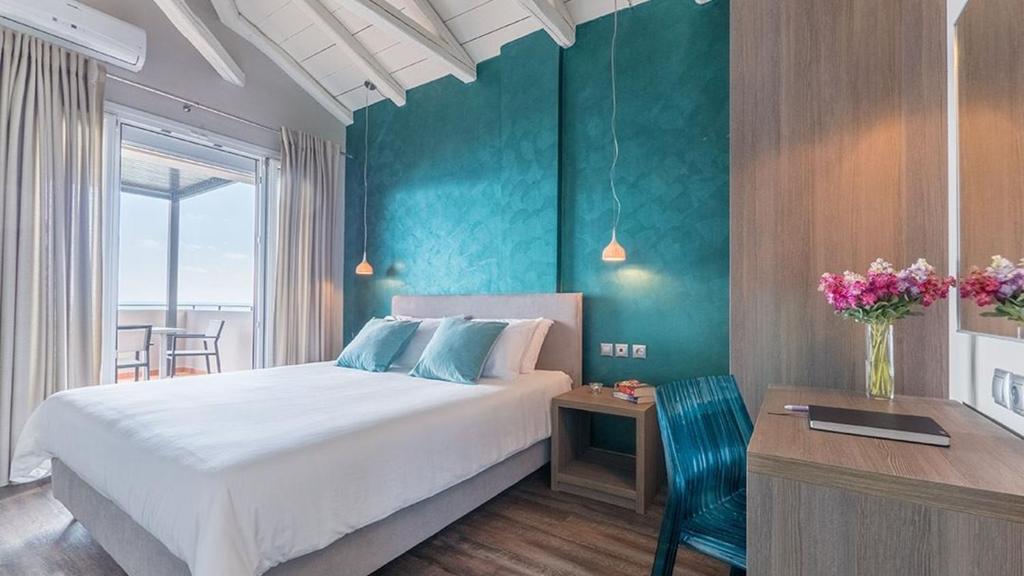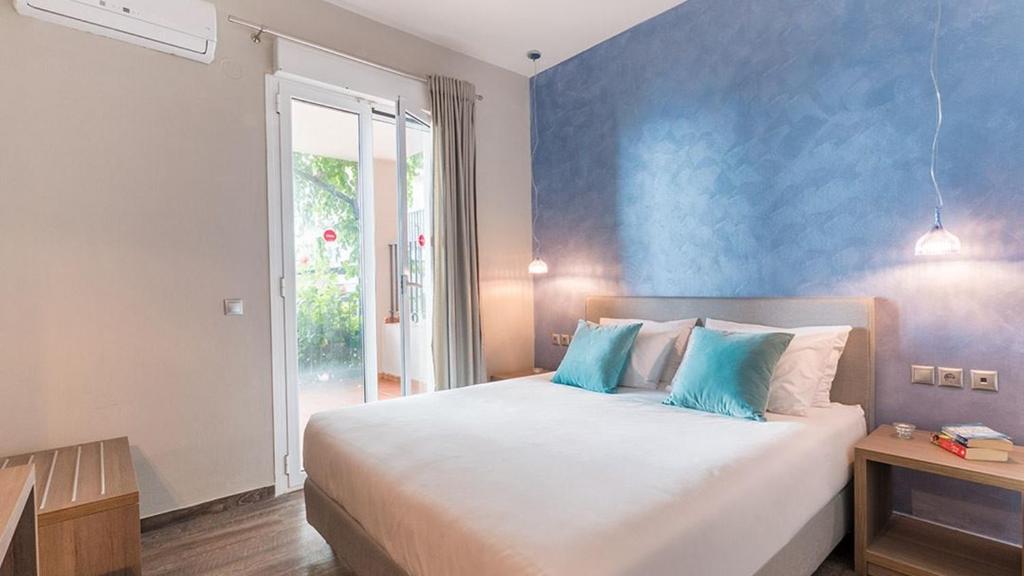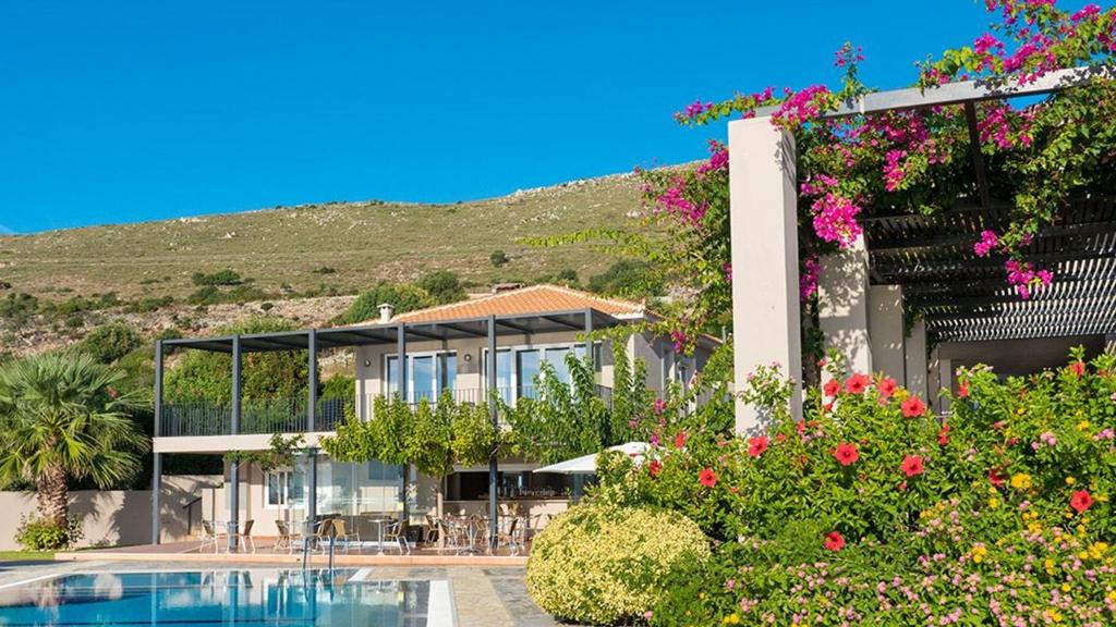 Blue Jasmine Hotel se află la 3 minute de mers pe jos de Plaja Porto Skala și oferă un restaurant, o piscină in aer liber sezonieră, o grădină și o terasă. Se oferă la locație WiFi gratuit in toată proprietatea și parcare privată.