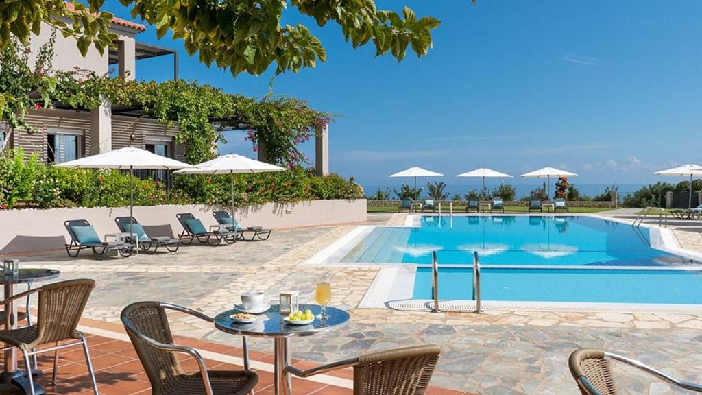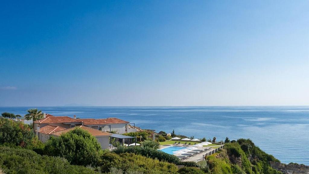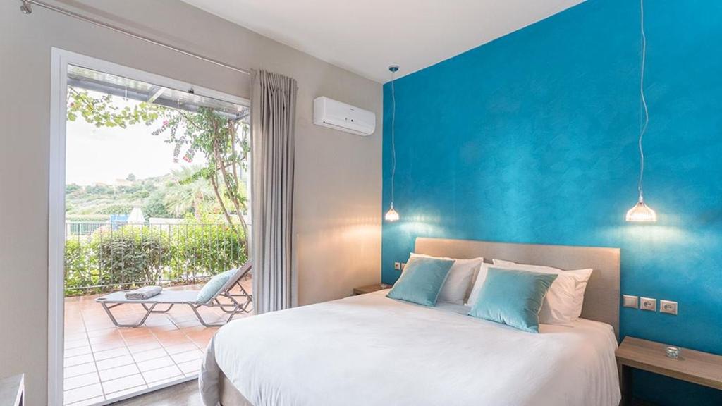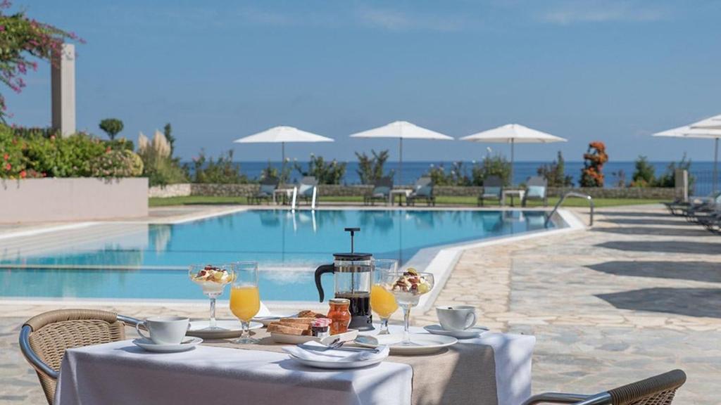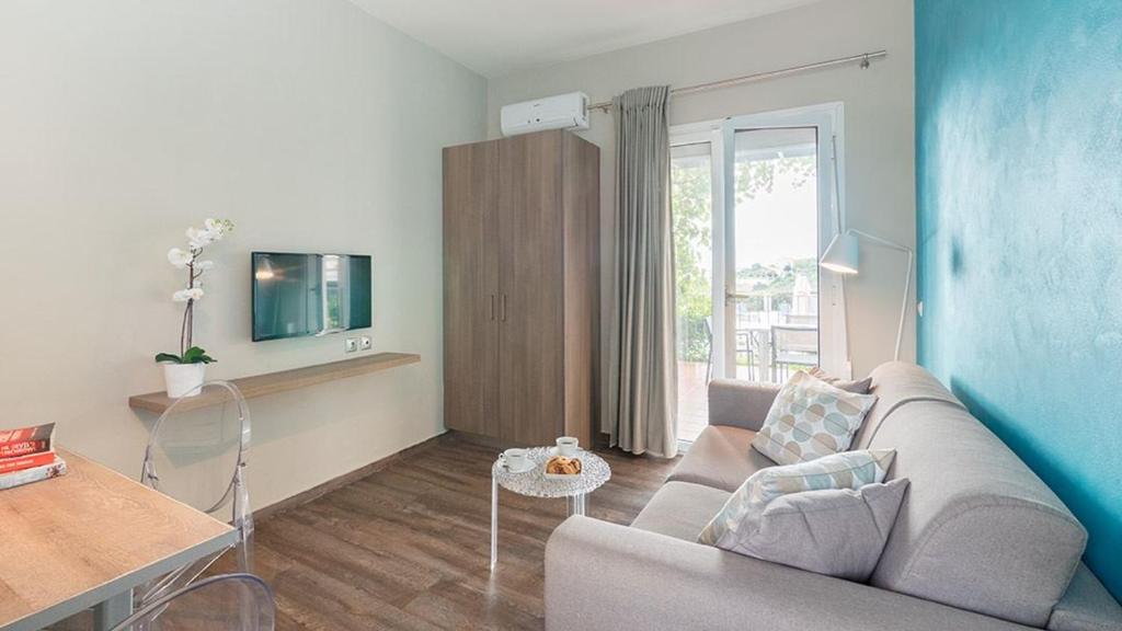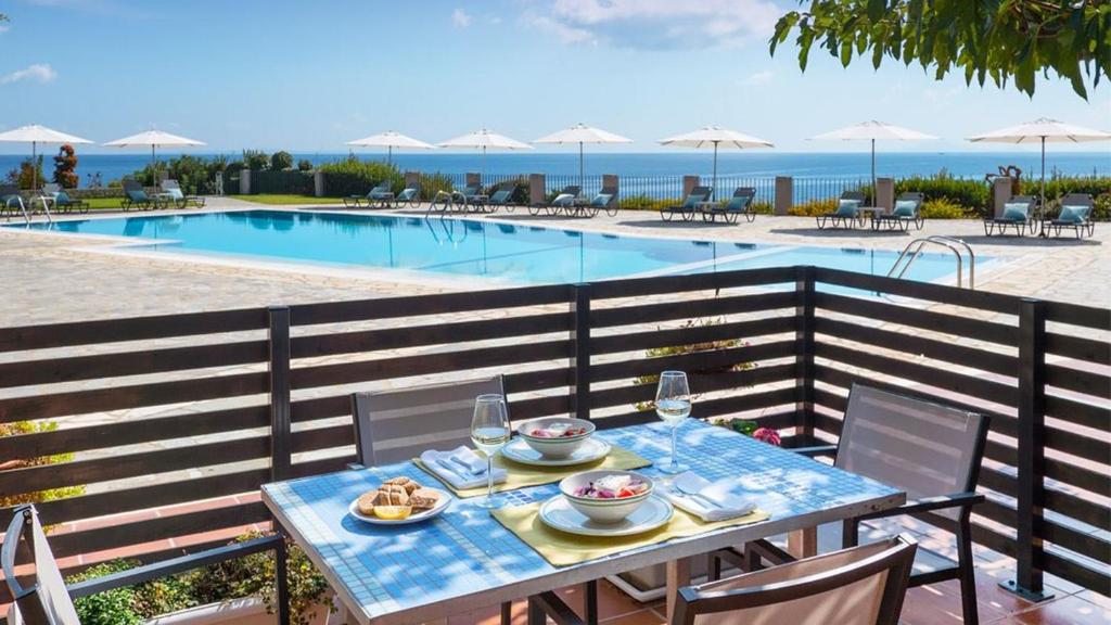 Blue Jasmine Hotel se află la 3 minute de mers pe jos de Plaja Porto Skala și oferă un restaurant, o piscină in aer liber sezonieră, o grădină și o terasă. Se oferă la locație WiFi gratuit in toată proprietatea și parcare privată.