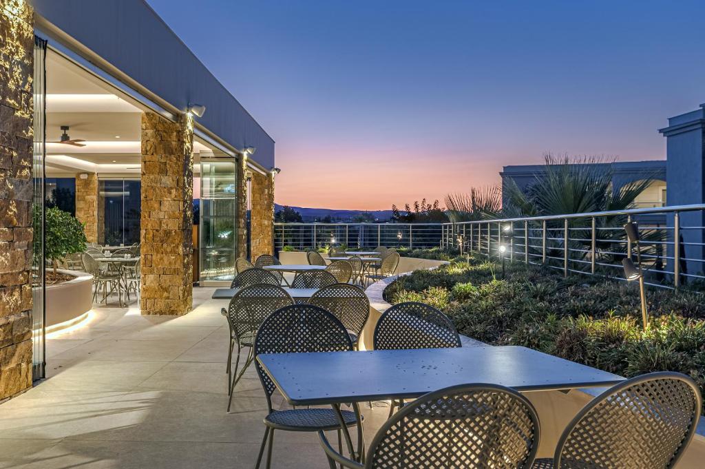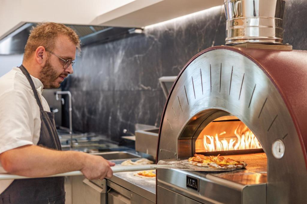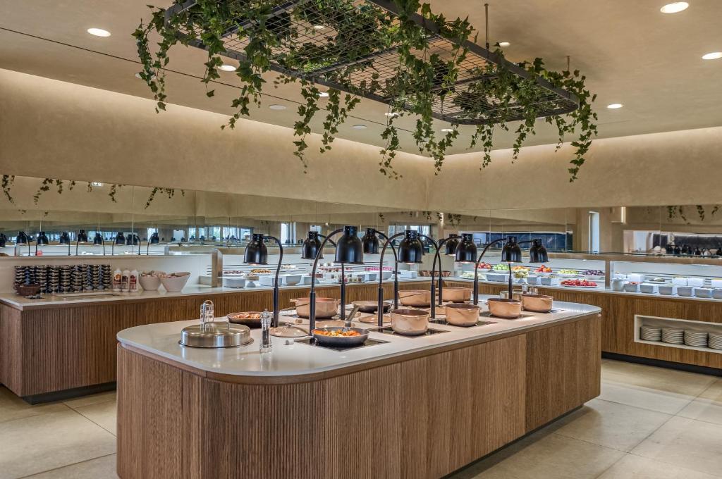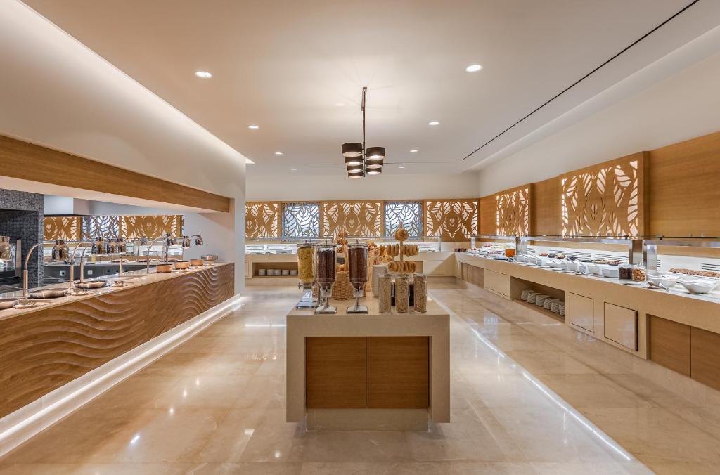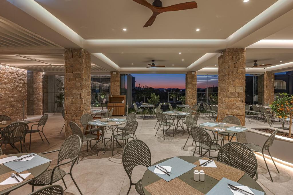 Proprietatea servește un mic dejun tip bufet, continental sau american. Blue Lagoon Queen are un restaurant care servește mancăruri din bucătăria grecească, italiană și mediteraneană. La cerere, sunt disponibile și preparate vegetariene, fără lactate și vegane.