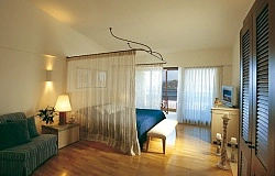 Bungalow superior cu vedere la mare (Superior Bungalow Sea view) = 40m2, baie marmura, cada, cabina de dus si WC separat, papuci, halat de baie, uscator de par, seif, mini bar, A/C individual, TV satelit LCD, acces internet Wi-FI; in camera la sosire cos de fructe, 1 sticla de vin si 1 sticla de apa; grad maxim de ocupare 2 adulti + 1 copil, 3 adulti