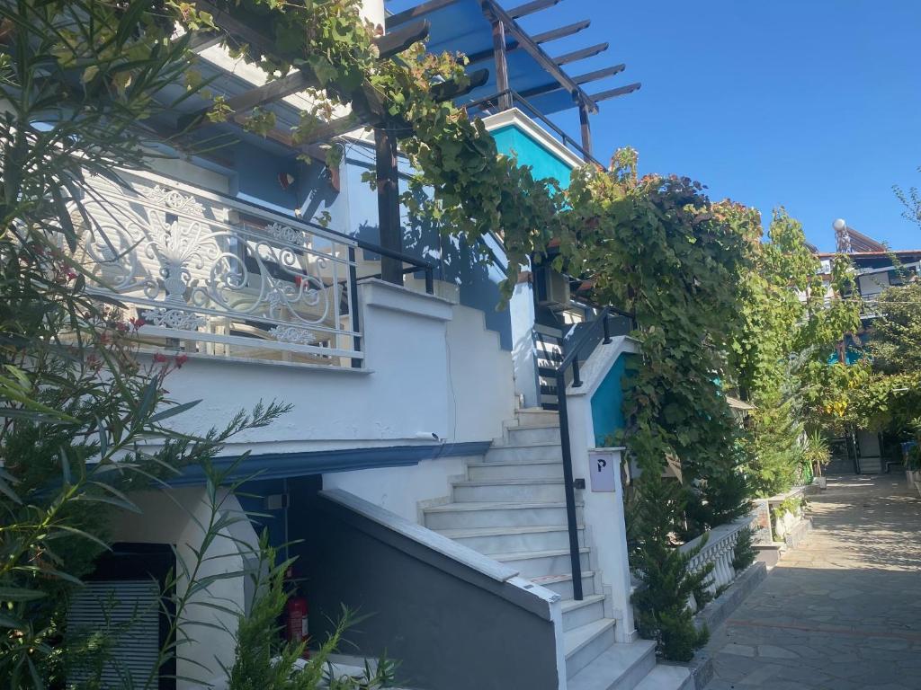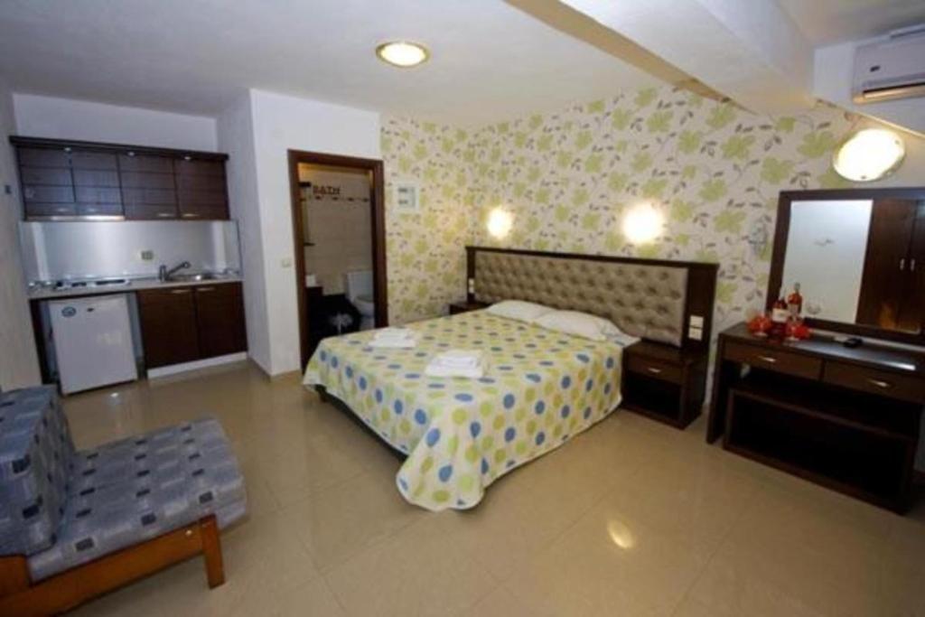 Camerele luminoase și confortabile sunt dotate cu aer condiționat, TV, mini-frigider și balcon, multe dintre ele oferind priveliști spectaculoase spre Marea Egee. Oaspeții se pot bucura de piscina in aer liber inconjurată de șezlonguri și umbrele, precum și de barul de la piscină care servește băuturi răcoritoare și cocktailuri.