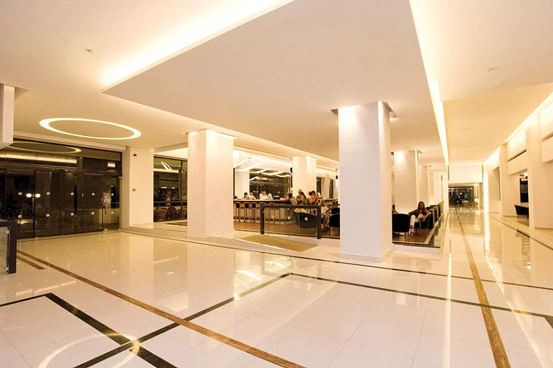 The elegantly appointed, air-conditioned hotel complex has a total of 311 rooms and features a lobby, a lobby bar, a snack bar, a beach restaurant and a main restaurant, as well as a Greek Tavern, a beach bar, and a playground and kids club for younger guests. Furthermore, the facilities include a reception desk manned around the clock, lift access, a currency exchange facility, a hotel safe, a small supermarket, a hairdresser, a TV lounge, conference facilities, public Internet access, a washing facility (charges apply), bicycle rental (charges apply) and a car park.