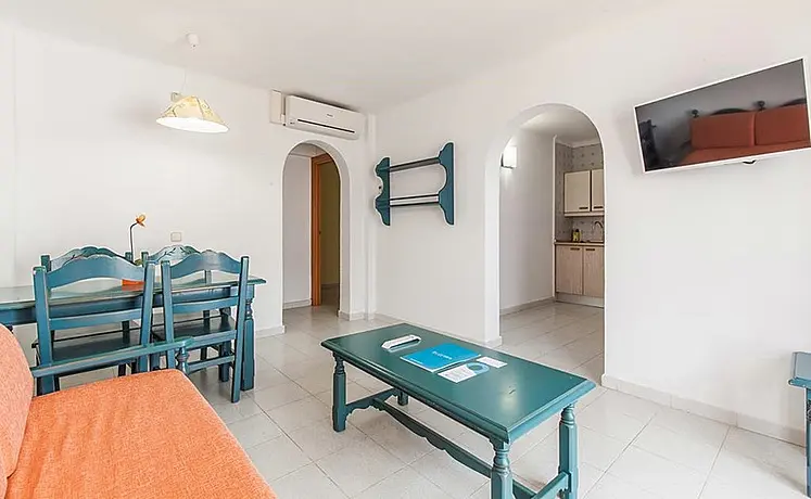 HOTEL: Este complejo fue renovado en 2003 y está situado en un jardín. Está formado por 31 apartamentos y 2 plantas. En la entrada puede encontrar hall, cambio de divisa y caja de seguridad. Los clientes pueden disponer de bar, cafetería, un salón de televisión, restaurante con servicio a la carta, con climatización, sillas para los niños, parking y servicio médico. SITUACIÓN: Está situado en un entorno privilegiado. Está en la localidad turística de Cala d´Or. Está a 350 metros de una playa. HABITACIÓN: Cuenta con apartamentos y baño. Tienen cocina americana, nevera, caja fuerte con cargo extra, teléfono, televisión y sala de estar. INSTALACIONES: En la parte exterior del hotel encontrará piscina, terraza donde podrá tomar el sol, tumbonas y sombrillas. Los clientes tienen disponible pista de tenis y ping pong. MÉTODOS DE PAGO: Se acepta American Express, Visa, Mastercard y Diners Club.