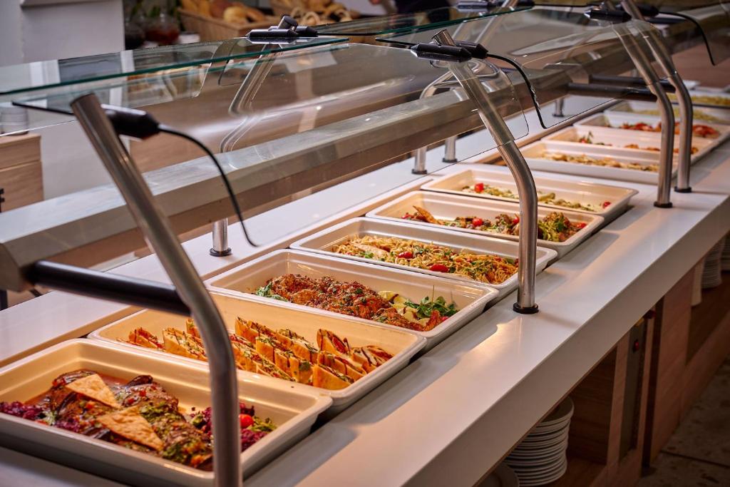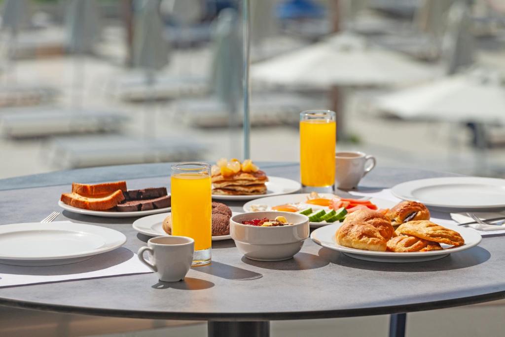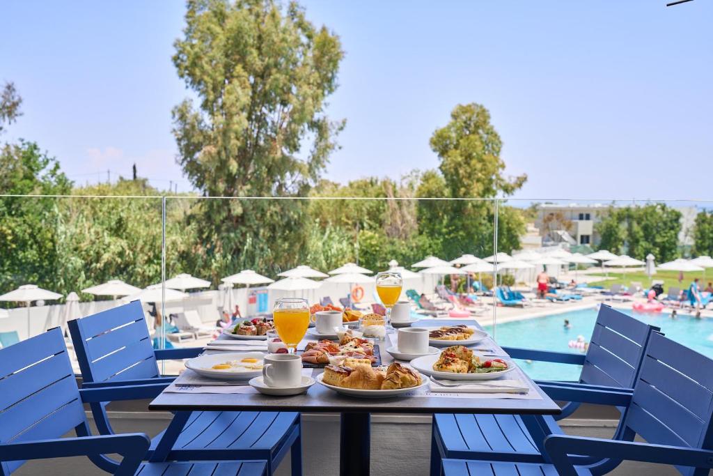 La Blue Sea Holiday Village este disponibil un mic dejun tip bufet. Acest hotel are un restaurant care servește mancăruri din bucătăria grecească, italiană și mediteraneană. La cerere, sunt disponibile și preparate vegetariene, vegane și fără gluten.