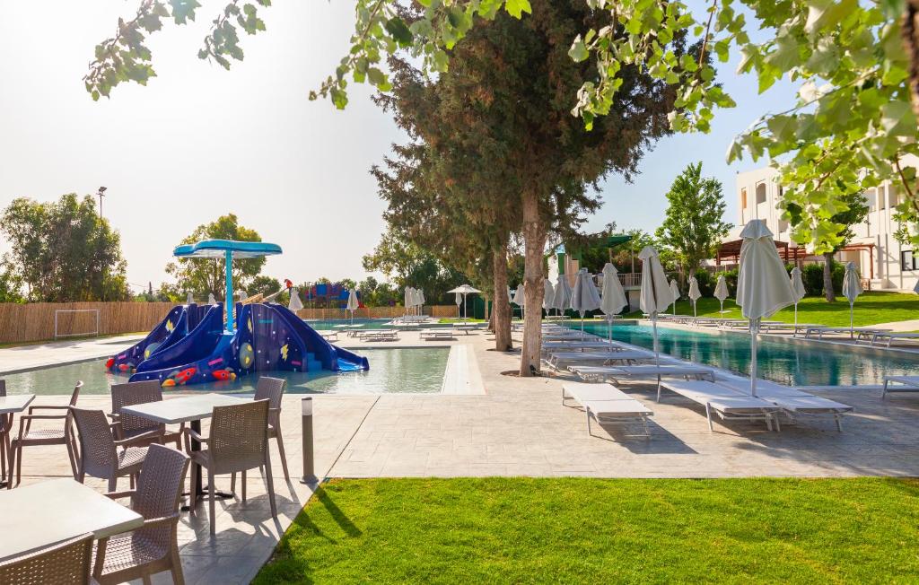 Blue Sea Holiday Village se află in Afantou și include un centru de fitness, o grădină, un lounge comun și o terasă. Acest hotel de 4 stele oferă un bar, precum și camere cu aer condiționat și WiFi gratuit, care beneficiază toate de o baie proprie. Acest hotel oferă o piscină in aer liber, o piscină interioară, karaoke și un club pentru copii.