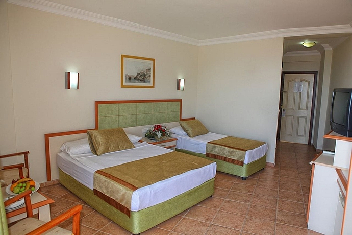 HOTEL: Este hotel cuenta con piscinas con áreas para niños, baño turco, una sauna, servicio de masaje, un gimnasio y club infantil. Los clientes disponen de internet, sala de reuniones, ascensores, servicio de lavandería, un restaurante, un bar de piscina, bar y bar de playa. SITUACIÓN: A 15 kilómetros está situado el centro de la ciudad de Alanya. A 500 metros puede encontrar la playa. Está a 118 kilómetros del aeropuerto. Cerca del establecimiento podrá encontrar clubes nocturnos y zonas turísticas. HABITACIÓN: Las habitaciones tienen cuarto de baño, teléfono, televisión, minibar, nevera, sistema de aire acondicionado, secador de pelo, caja fuerte y balcón.